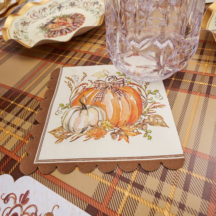 Elevate your gatherings with this set of 26 turkey and gourds-themed cocktail napkins. Crafted to add a refined seasonal touch, these napkins blend charming autumn motifs with practical elegance, making them perfect for entertaining guests during fall celebrations or Thanksgiving. Their quality material ensures both style and functionality for a polished presentation at every event.