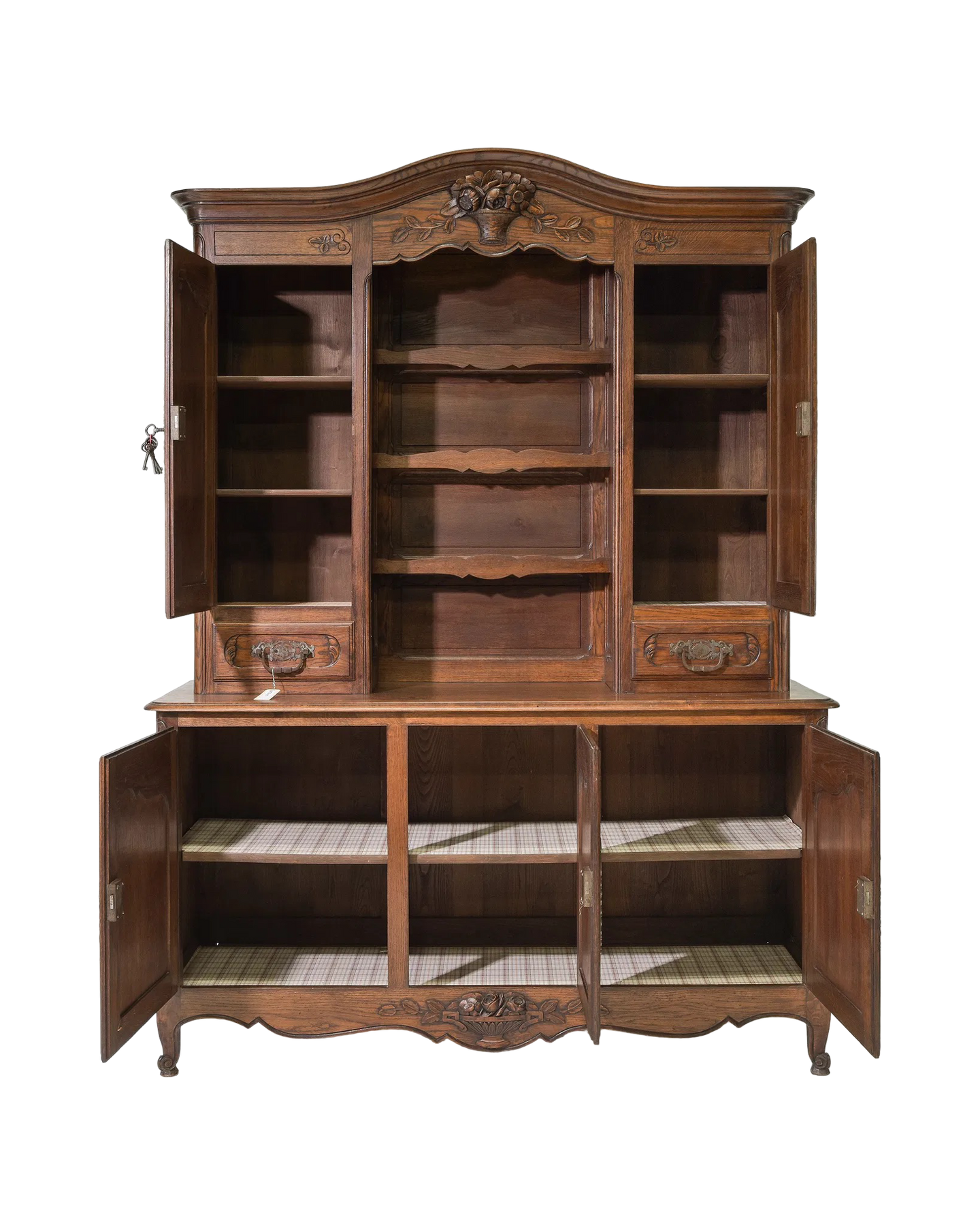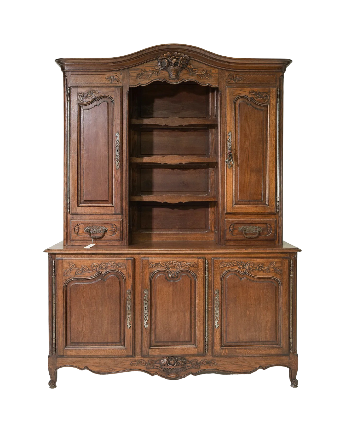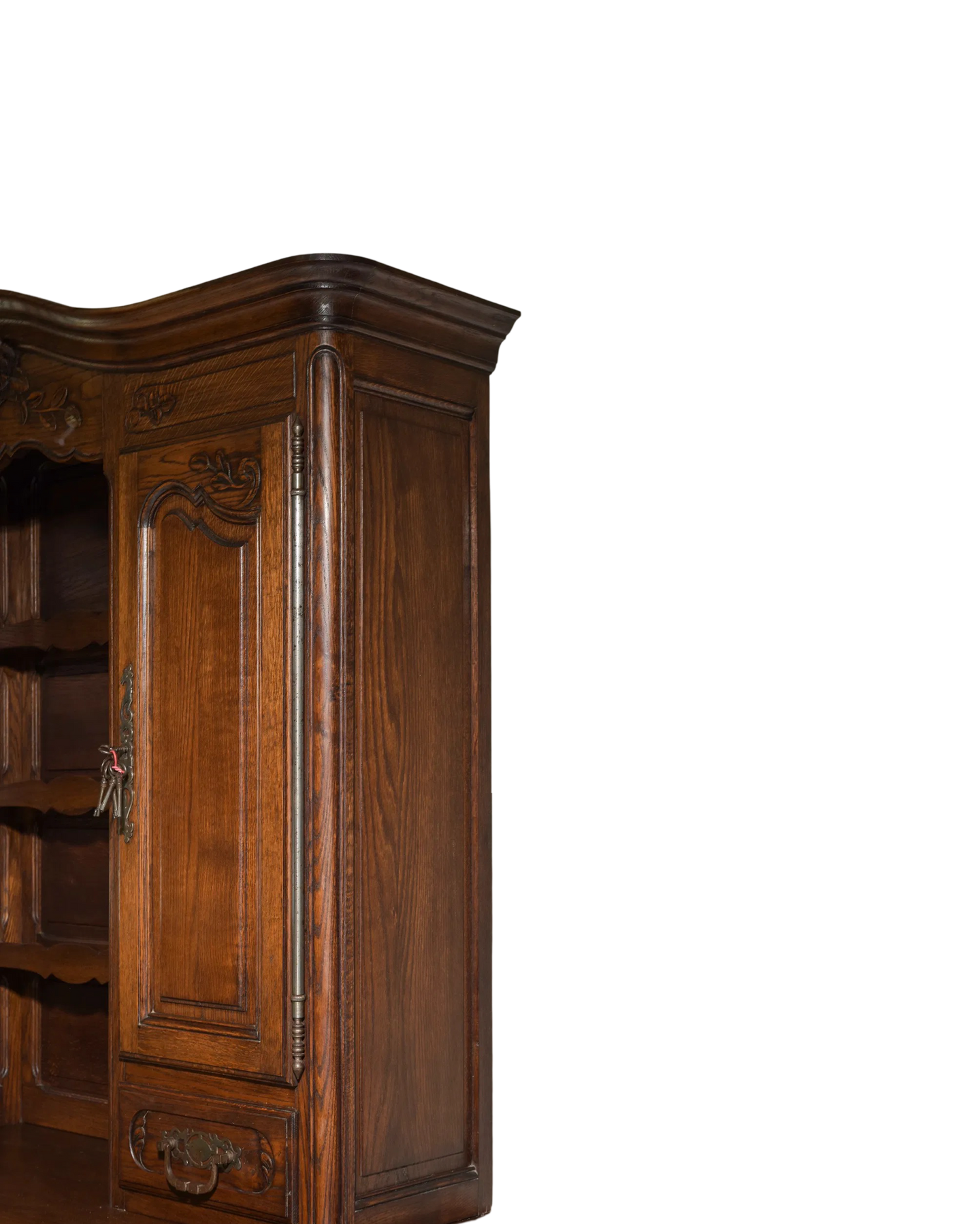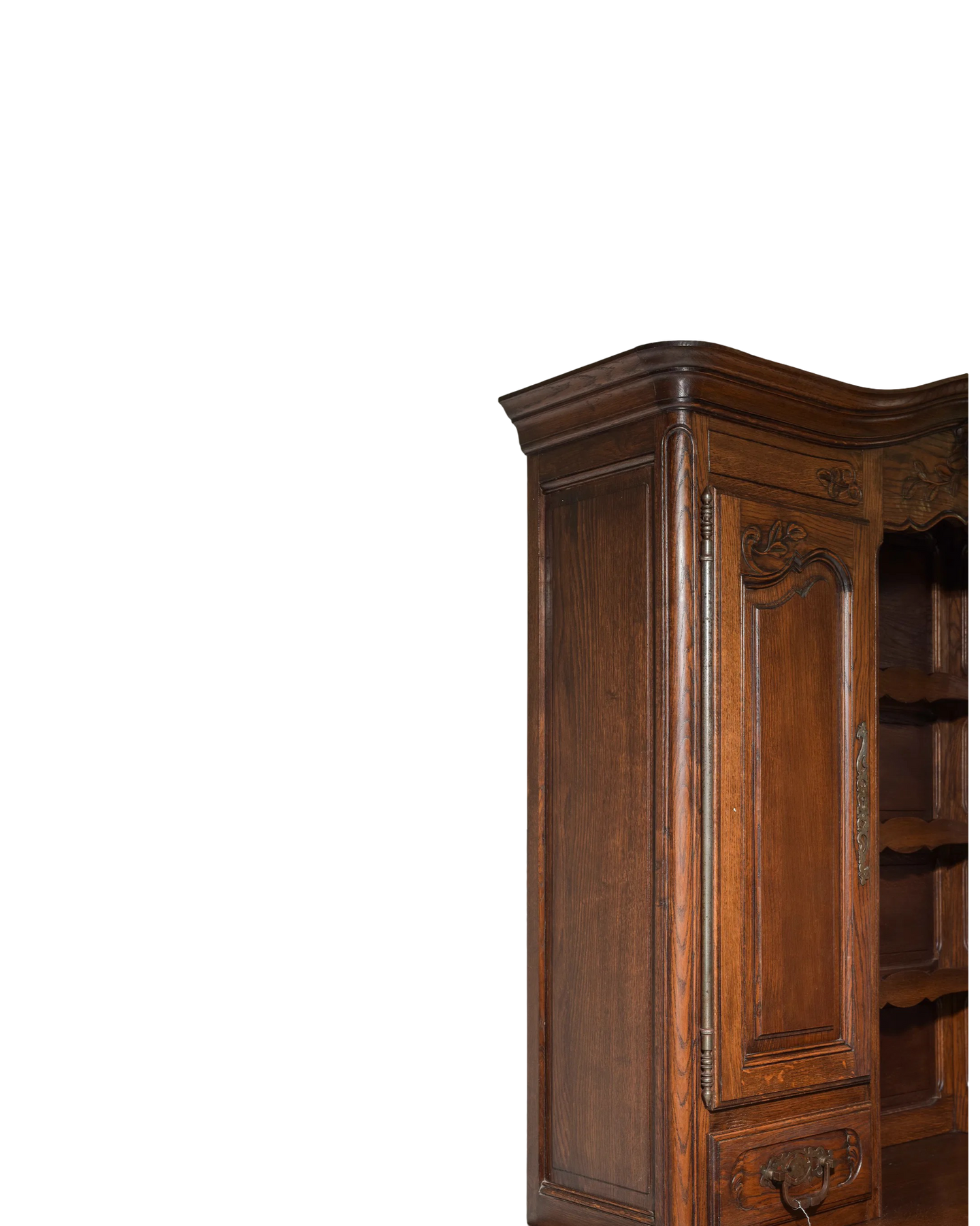 Elevate your living space with this Antique Louis XV Oak Vaisselier, featuring an exquisite carvings that showcases elegant craftsmanship. Made from durable oak, its graceful curves and classic design offer both timeless charm and practical storage. Perfect for displaying your finest china or treasured collectibles, this piece adds a refined French touch that enriches any room with history and sophistication. Measures: 88 in tall x 65 x 22.