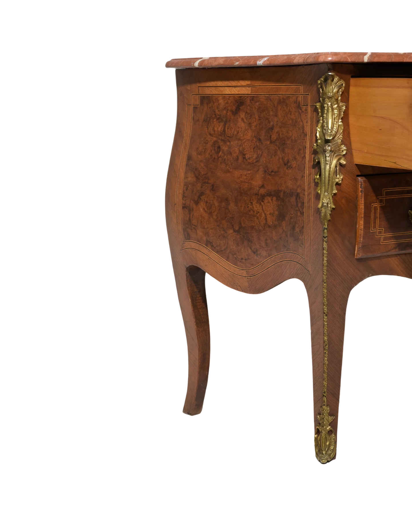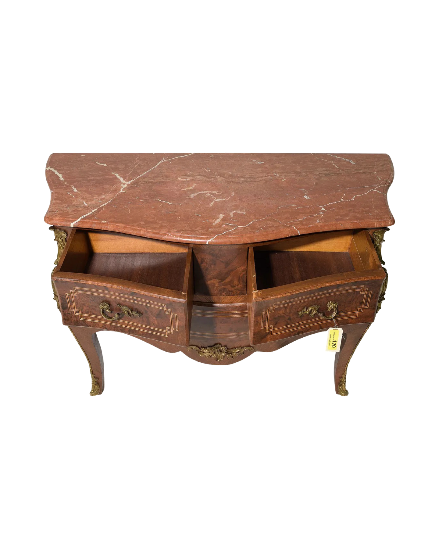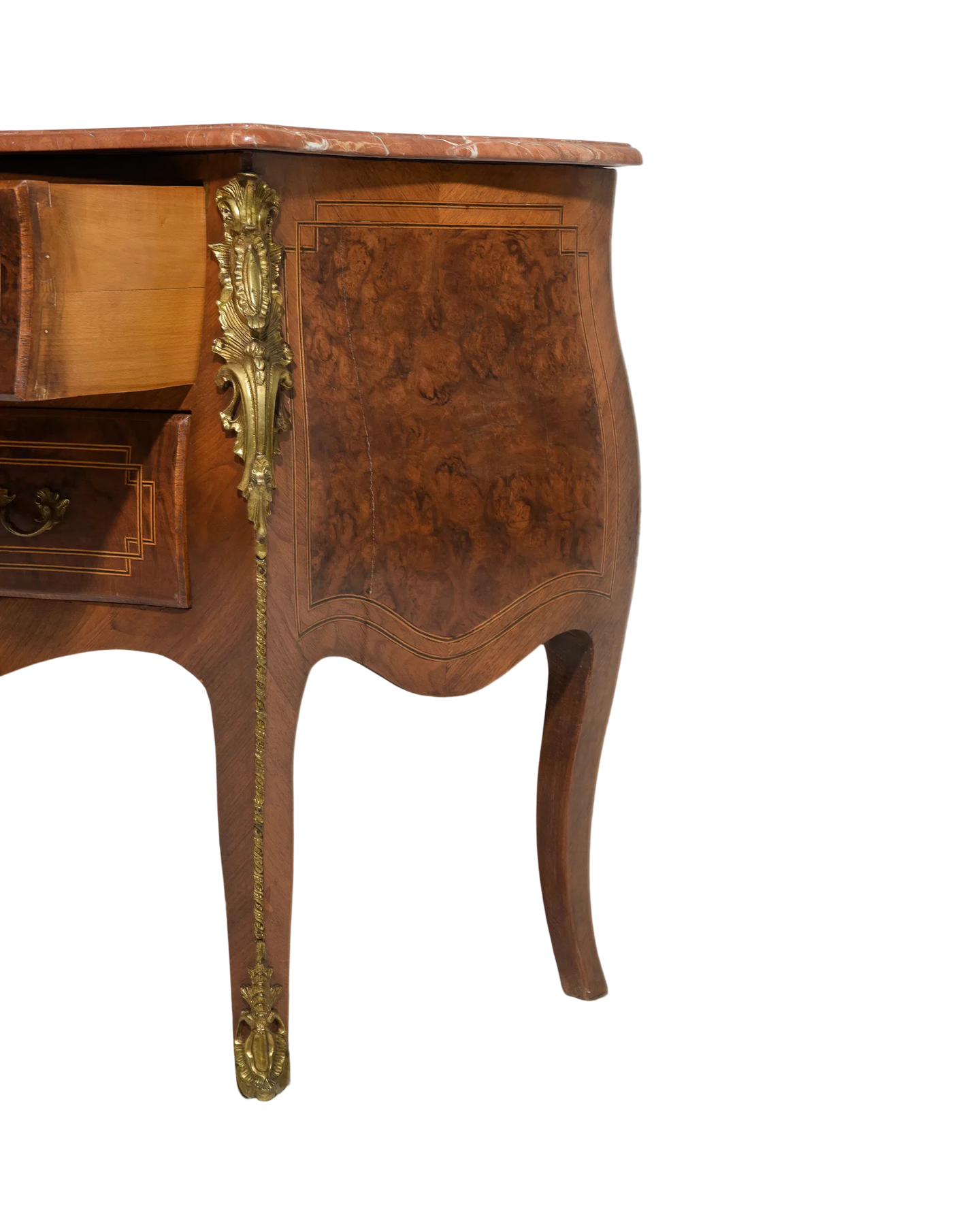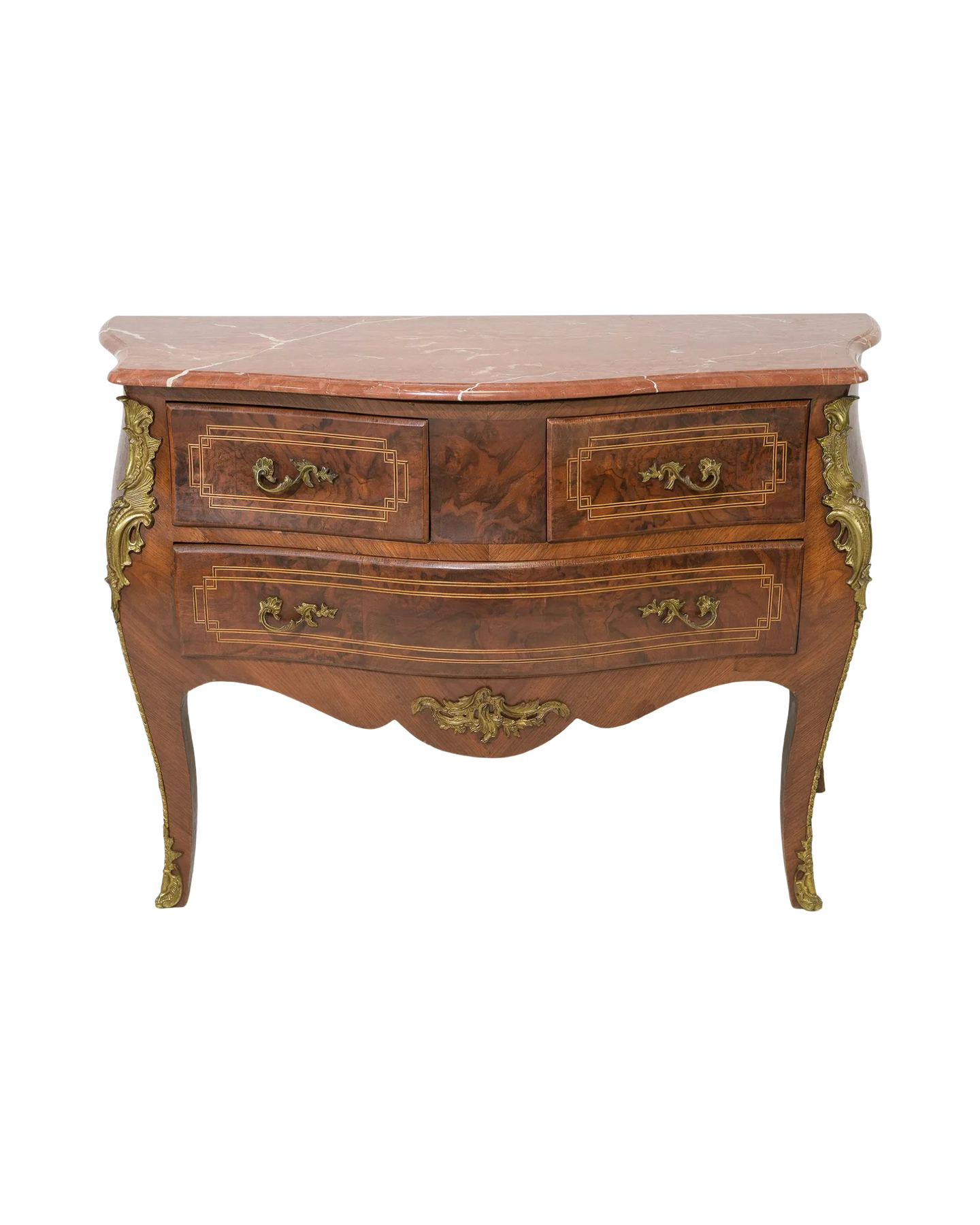 Elevate your space with this Antique Louis XV Style Chest, featuring a luxurious marble top and rich walnut craftsmanship. Its elegant curves and intricate details embody timeless French design, adding both beauty and refined storage to your home. Perfect for showcasing treasured items or enhancing your decor with authentic vintage charm. Measures: 33 in tall x 49 x 21.5, c. 1920.