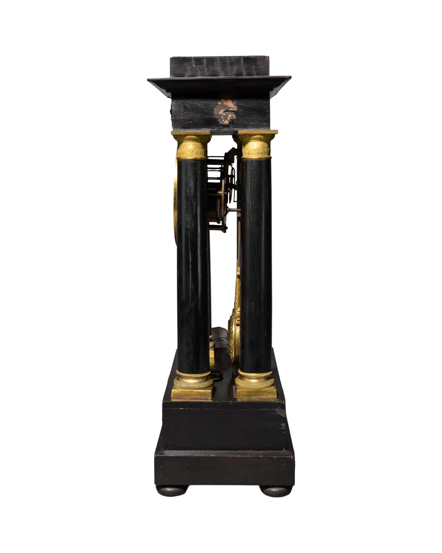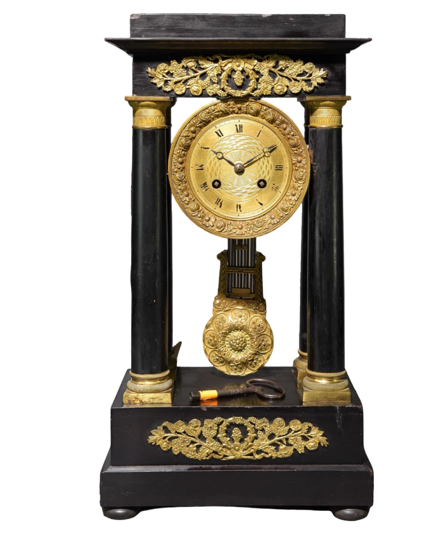 Elevate your living space with this exquisite Antique Napoleon III Style Mantle Clock, richly adorned with intricate ormolu detailing. This timeless piece combines classic elegance with fine craftsmanship, making it a striking focal point for any mantel or shelf. Its ornate design not only enhances your décor but also reflects a refined taste for historical artistry. Add a touch of sophistication and heritage to your home with this distinguished clock that promises both beauty and lasting charm. Measures: 17.5 in tall x 9.5 x 6.