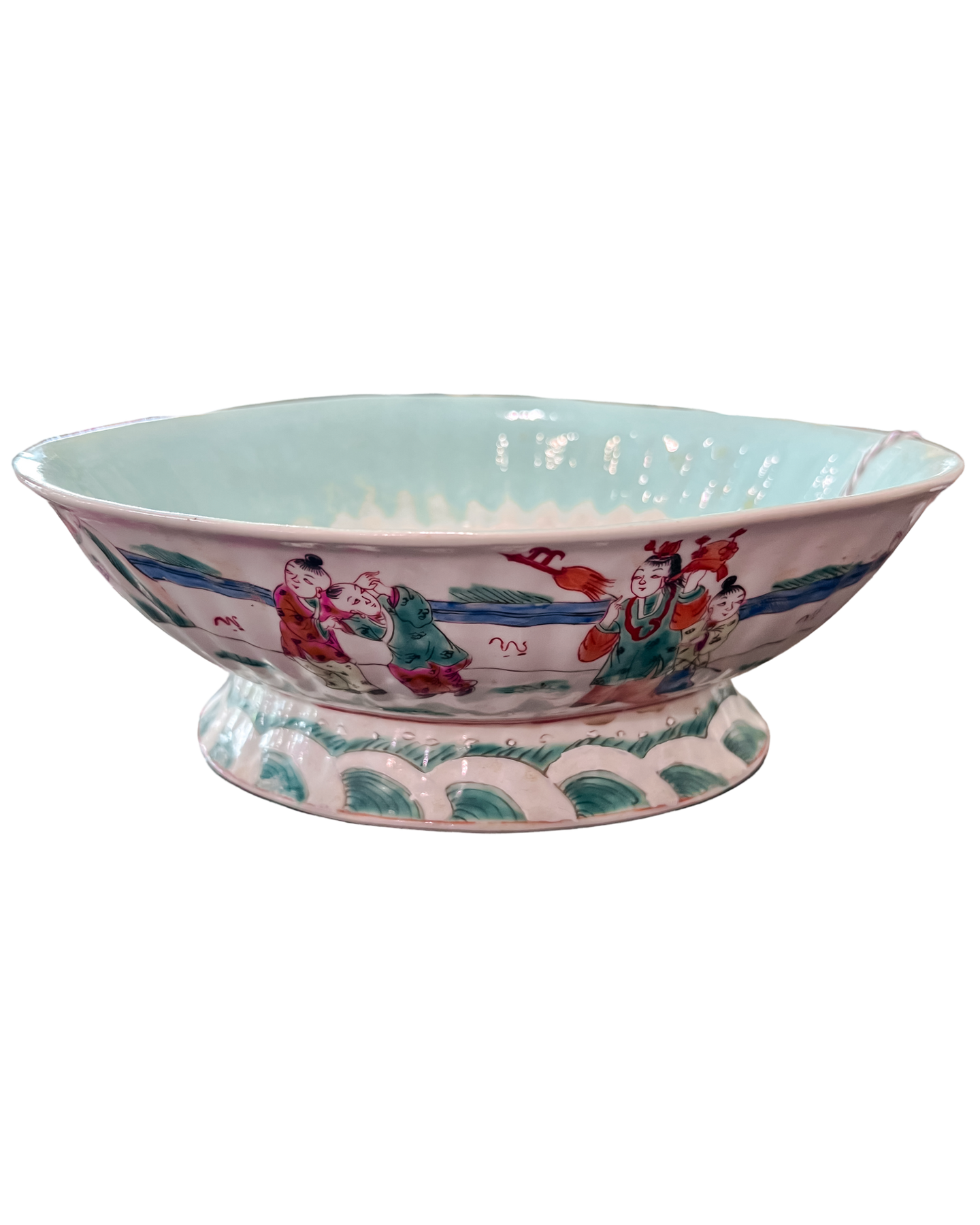 Footed Chinoiserie Hand-Painted Offering Bowl
