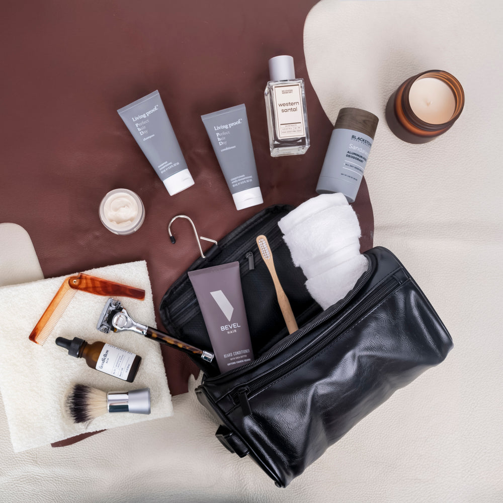 Upgrade your travel game with this durable and stylish Gentlemen's Travel Dopp Kit. Made from a blend of high-quality polyester, PVC, and vegan leather, it's built to withstand the wear and tear of any adventure while keeping your essentials organized and protected. Don't sacrifice functionality for fashion - this kit has it all.