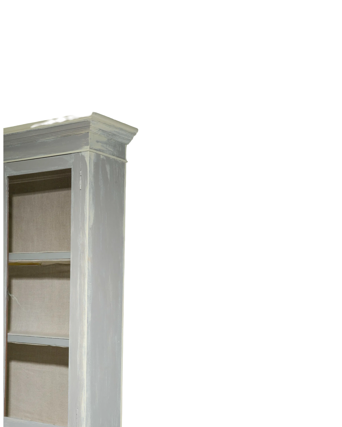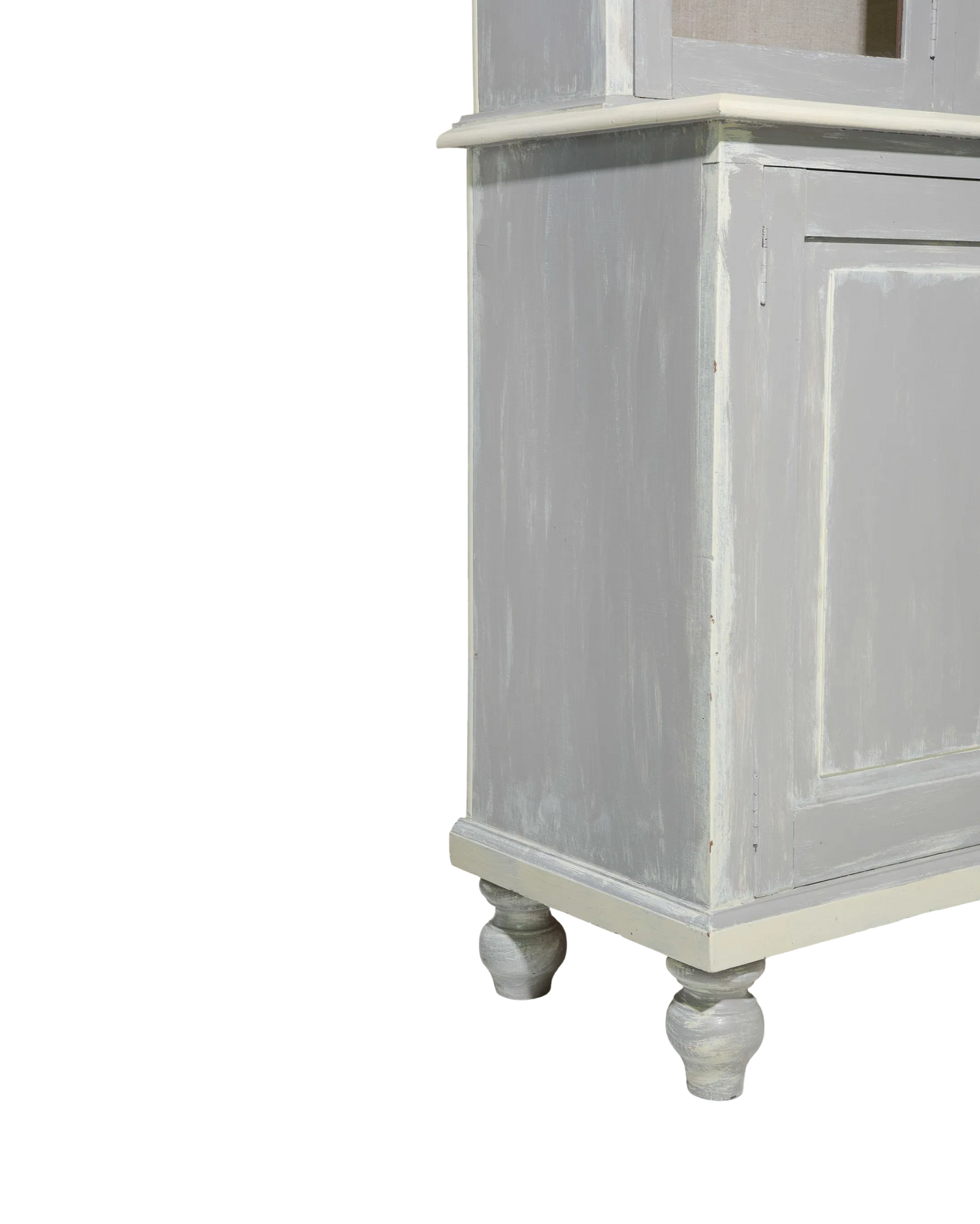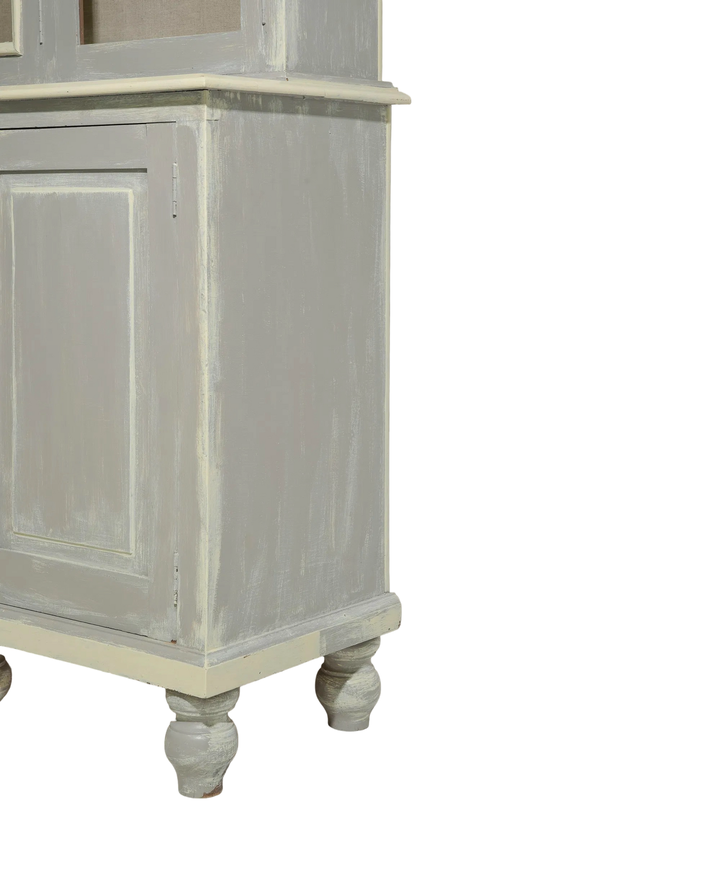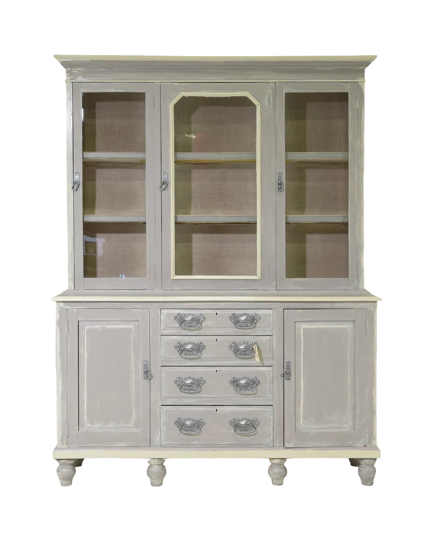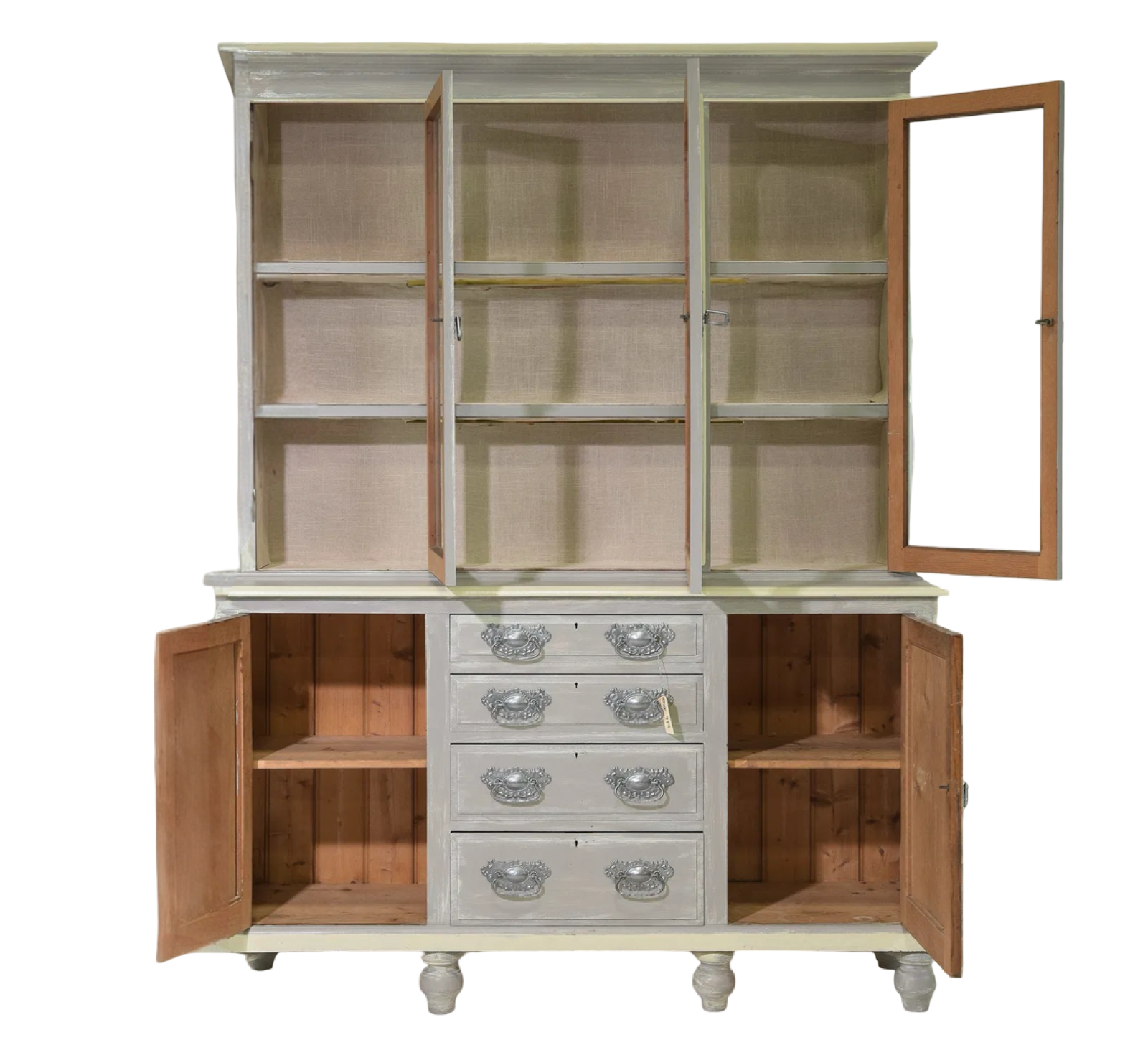 Bring timeless elegance to your space with this Antique French Faux Painted Pine Hutch. Crafted to replicate classic French design, its hand-finished faux paint and pine construction offer vintage charm without the fragility of true antiques. Perfect for displaying treasured items or adding storage with style, this hutch blends rustic warmth and refined details to elevate any room. Its durable build promises lasting beauty, making it a sophisticated centerpiece for your home. Measures: 81.5 in tall x 61.5 x 17.5.