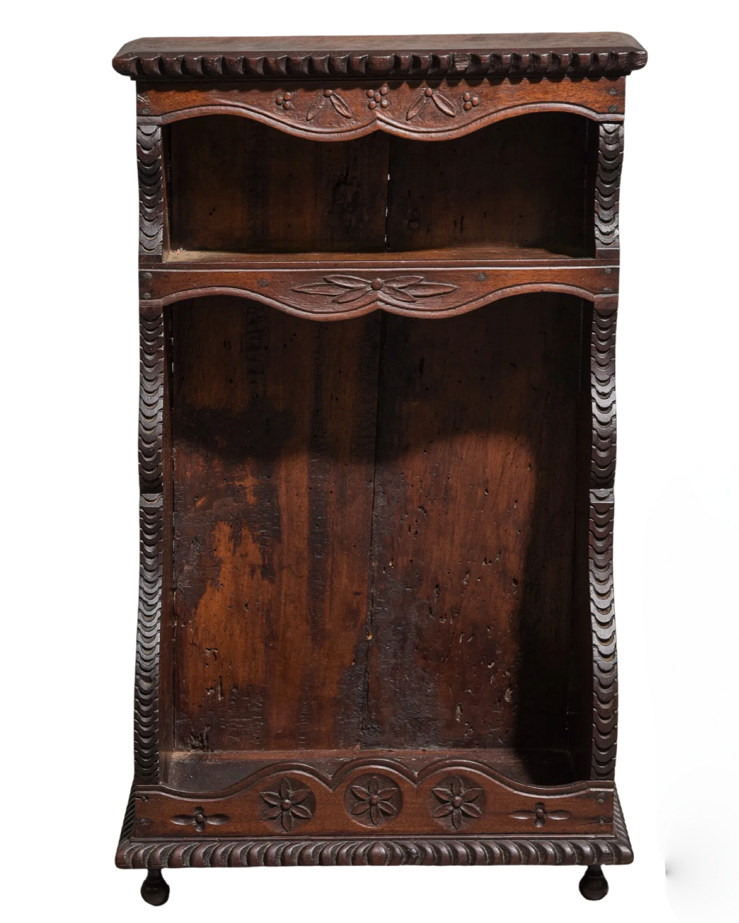 Elevate your space with this Antique French Walnut Shelf, designed for versatile use as a free-standing or wall-hung piece. Crafted from rich walnut, it brings timeless elegance and sturdy functionality to any room. Perfect for displaying cherished items or organizing essentials, this shelf combines classic French charm with practical design to enhance your home’s character effortlessly. Measures: 27.5 in tall x 17 x 8.