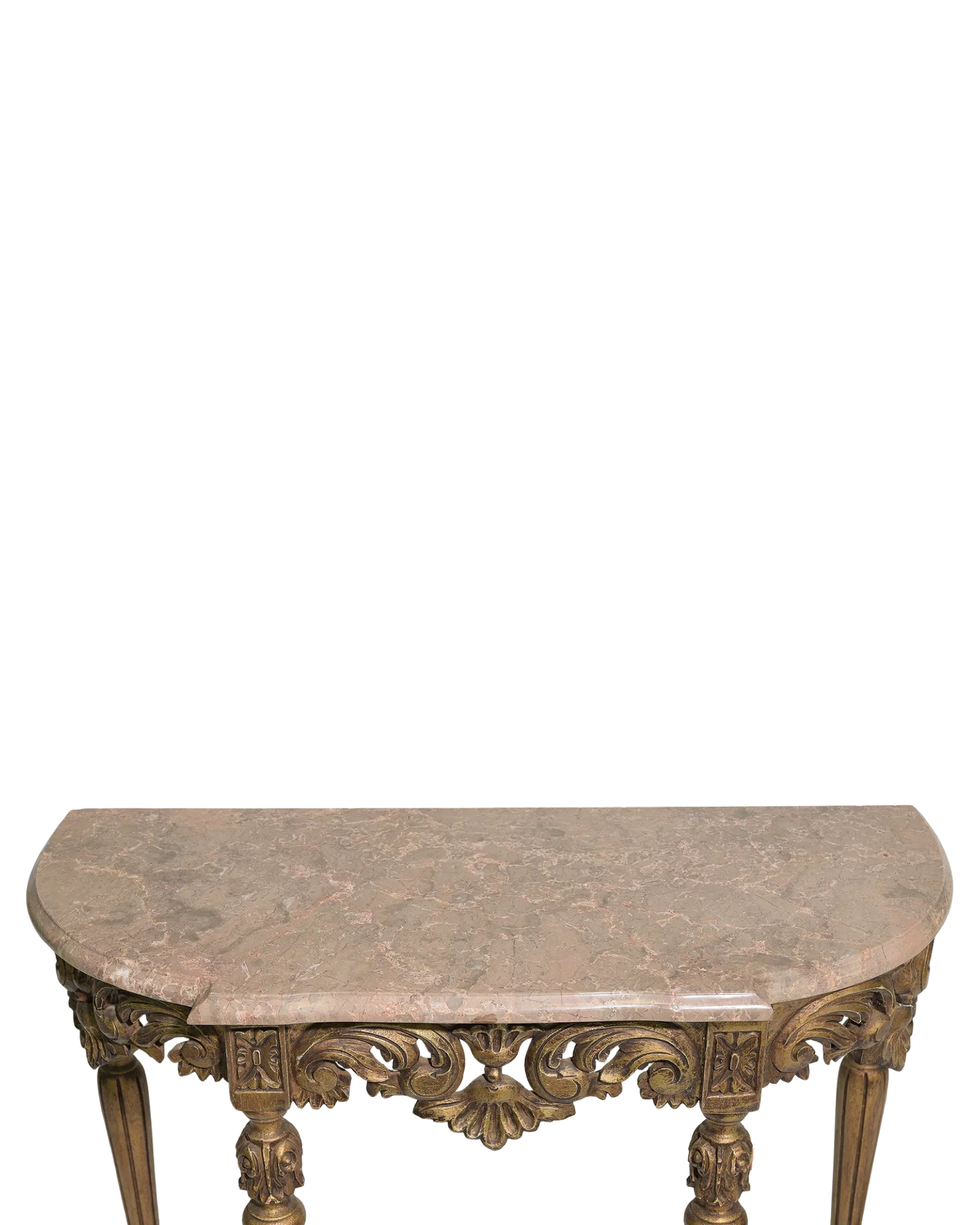 Elevate your entryway with this exquisite Antique Louis XVI Style Marble Top Hall Table, crafted circa 1910. Featuring a beautifully veined marble surface and elegant carved details, this console blends timeless sophistication with functional charm. Perfect for displaying treasured accents or welcoming guests, it adds a refined touch to any space while offering durable quality that lasts through generations. Measures: 30.5 in tall x 34 x 14.5.