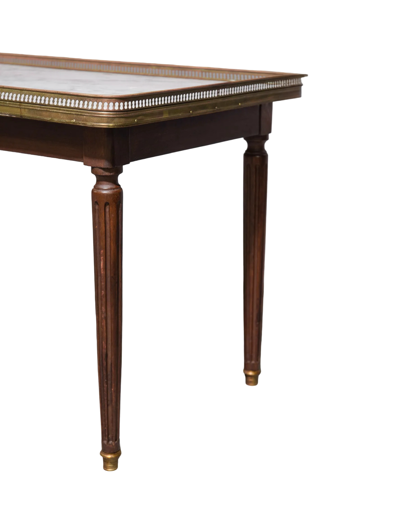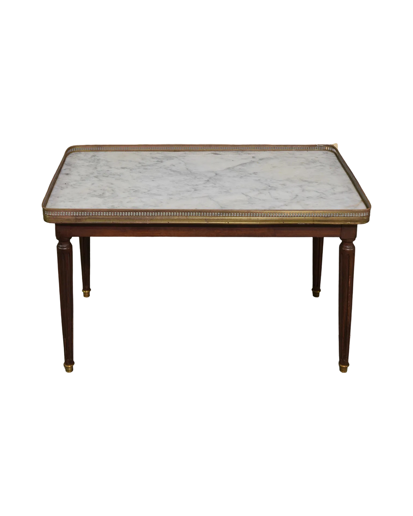 Elevate your living space with this exquisite Antique Louis XVI Style Coffee Table, featuring a pristine white marble top dating back to circa 1920. Its timeless design combines elegant craftsmanship with durable materials, offering both beauty and functionality. Perfect for adding a touch of classic sophistication to any room, this coffee table is a statement piece that blends historical charm with everyday use. Measures 19 in tall x 32" x 18".