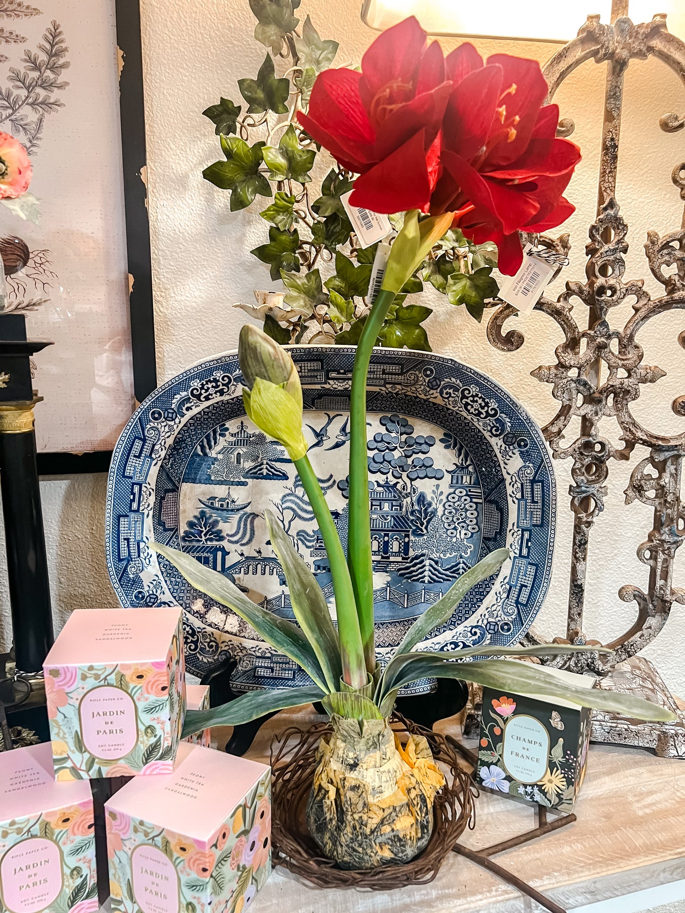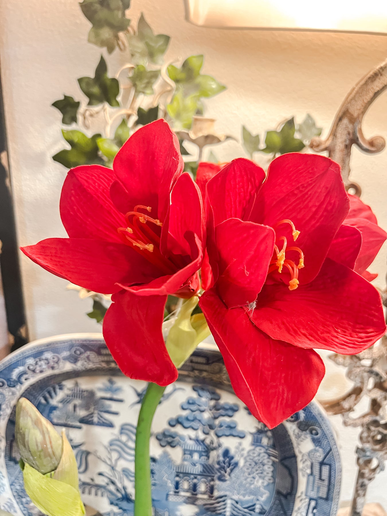 Bring vibrant elegance to your home with this 25-inch Red Faux Amaryllis Bulb. Its striking red blooms add a touch of natural beauty without any maintenance. Perfect for brightening any space year-round, this realistic faux flower stays fresh-looking and hassle-free, enhancing your décor effortlessly.