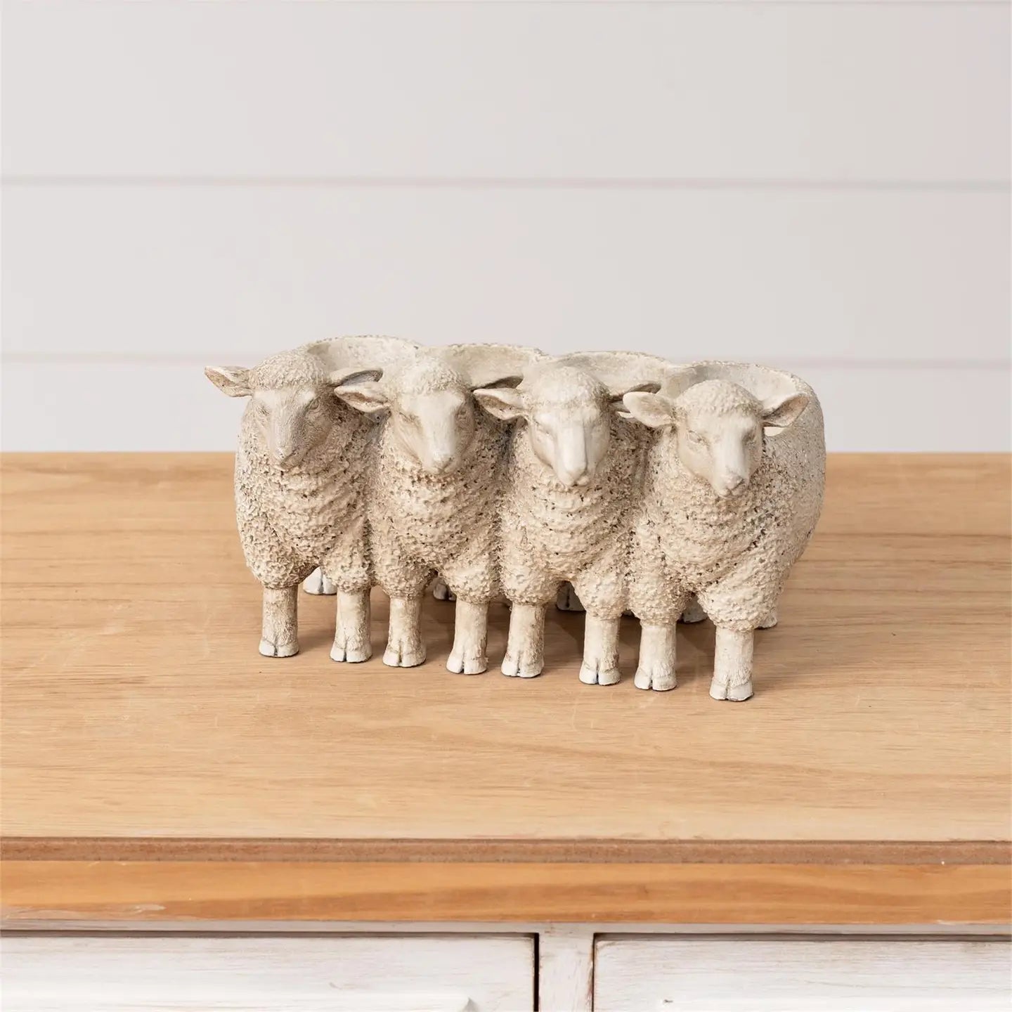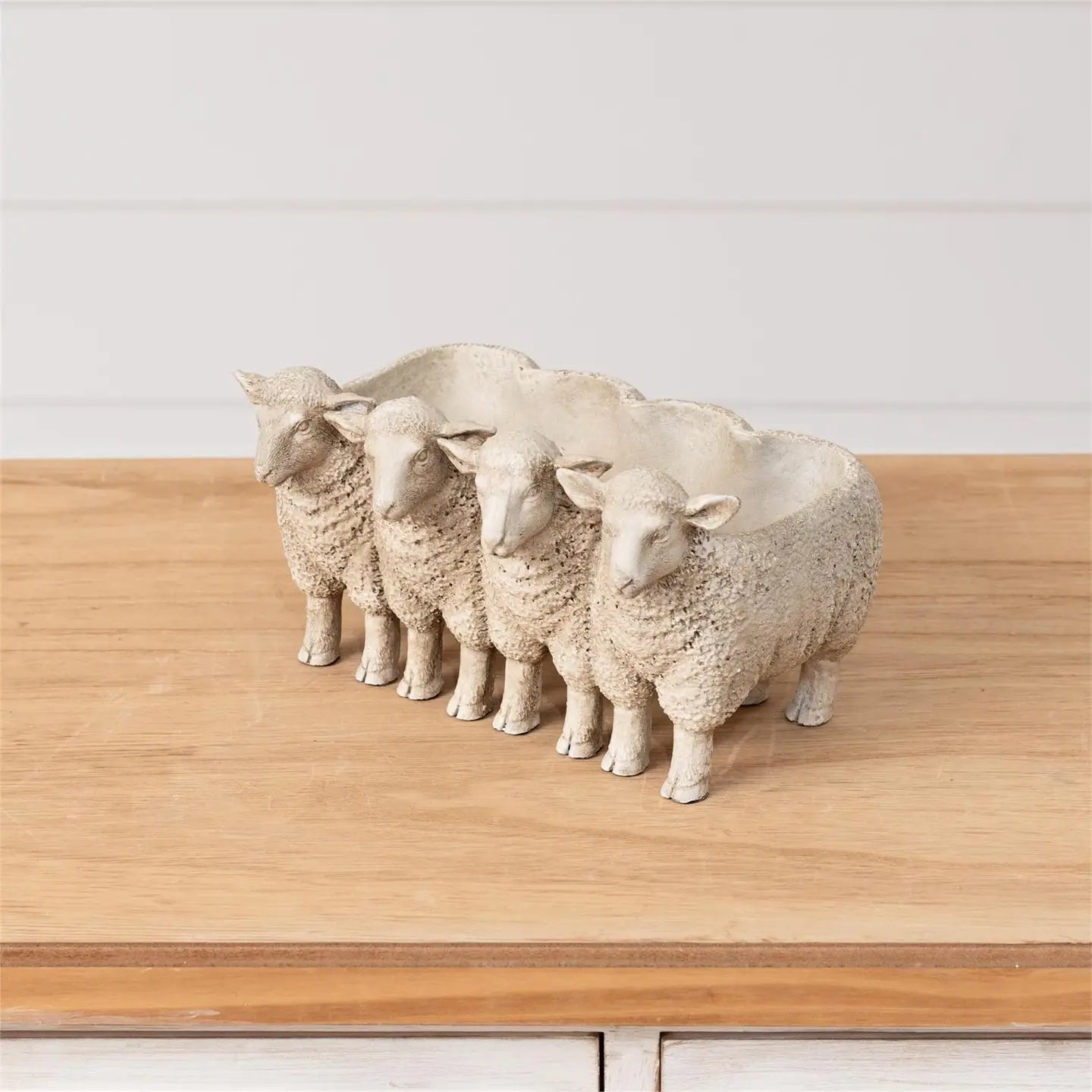 Bring some whimsy and charm to your garden with our Planter - Group of Lambs. These adorable lambs will add a playful touch to your flowers and plants. Made from high-quality materials, they are durable and will make a delightful addition to any outdoor space. Shepherd your garden to perfection! Measures 4.5" H x 7.75" W x 5" D.