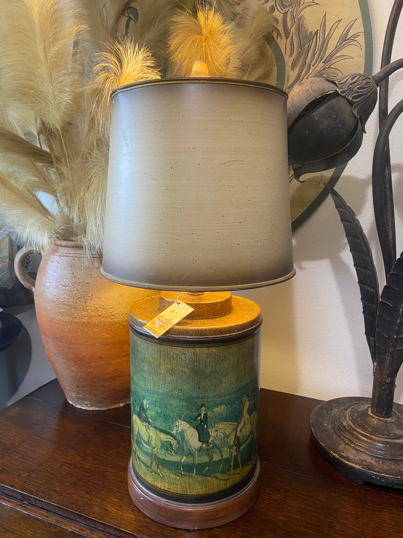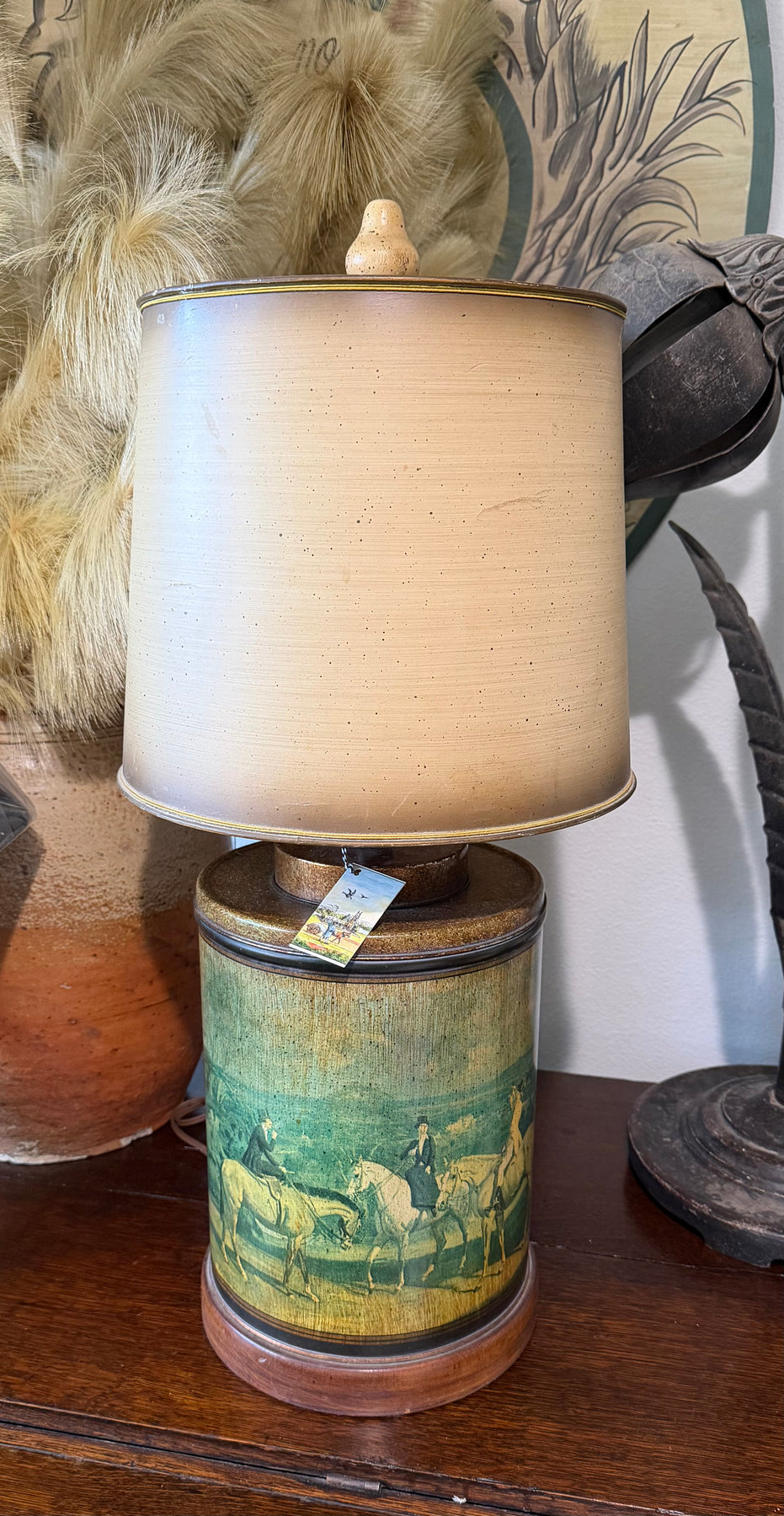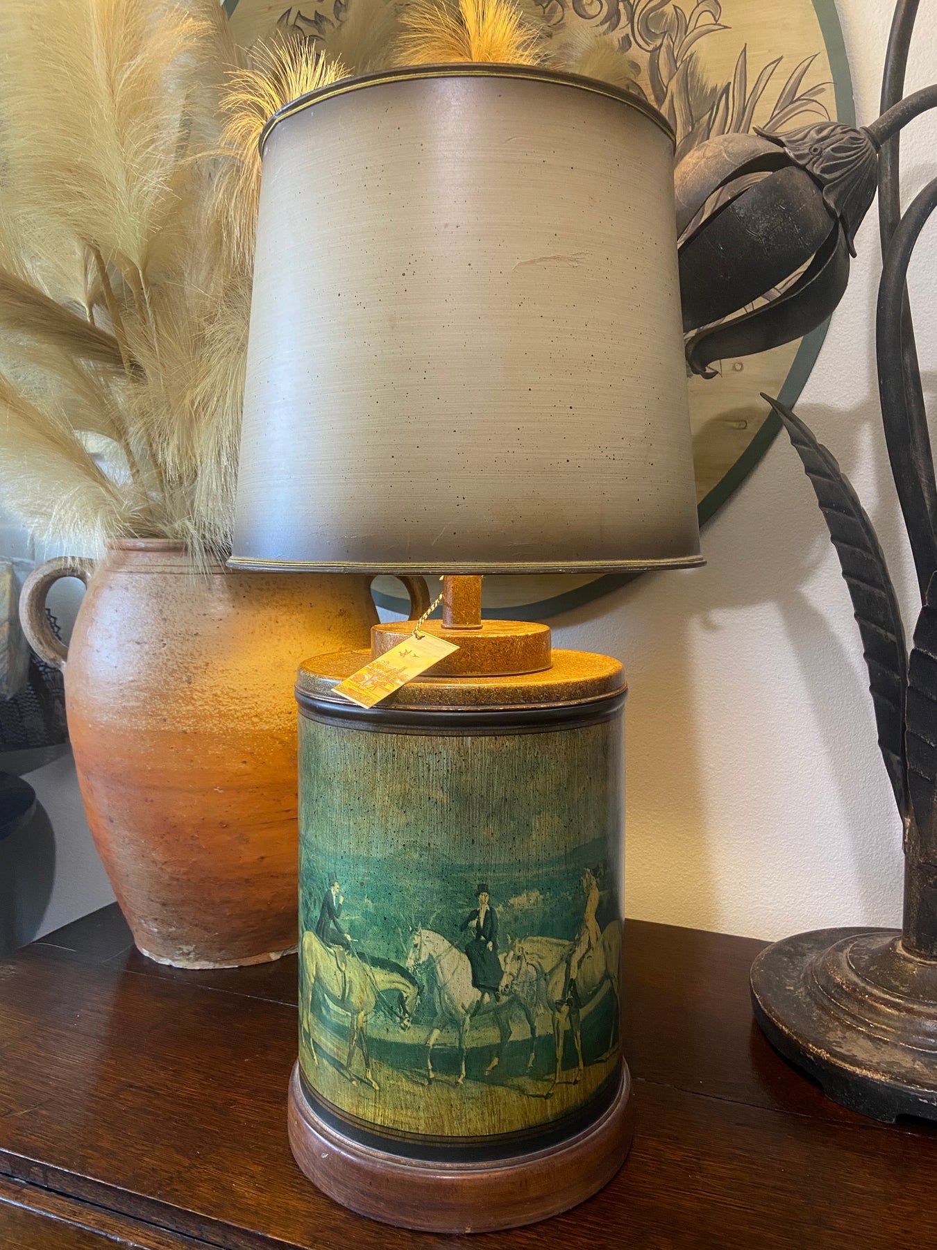 Illuminate your space with the charm of the English countryside using this Hunting Scene Canister Custom Lamp. Featuring a detailed hunting scene, this lamp adds a rustic yet elegant touch to any room. Its unique design not only provides warm, inviting light but also serves as a captivating centerpiece, perfect for those who appreciate classic decor with a personalized flair. Enhance your home with this sophisticated blend of artistry and functionality. Measures: 26.5 in tall x 13 x 10.