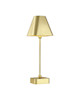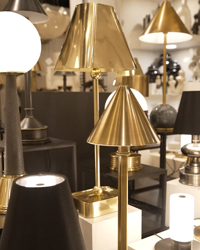 Elevate your space with the Gadabout Brass Cordless Table Lamp, featuring a sleek metal brass finish and a matching metal shade. Its rechargeable bulb offers cordless convenience, allowing you to place it anywhere without the hassle of cords. This striking lamp measures 20" high, 7" wide, and 5.5" deep, this lamp combines style and functionality to brighten your home effortlessly.
