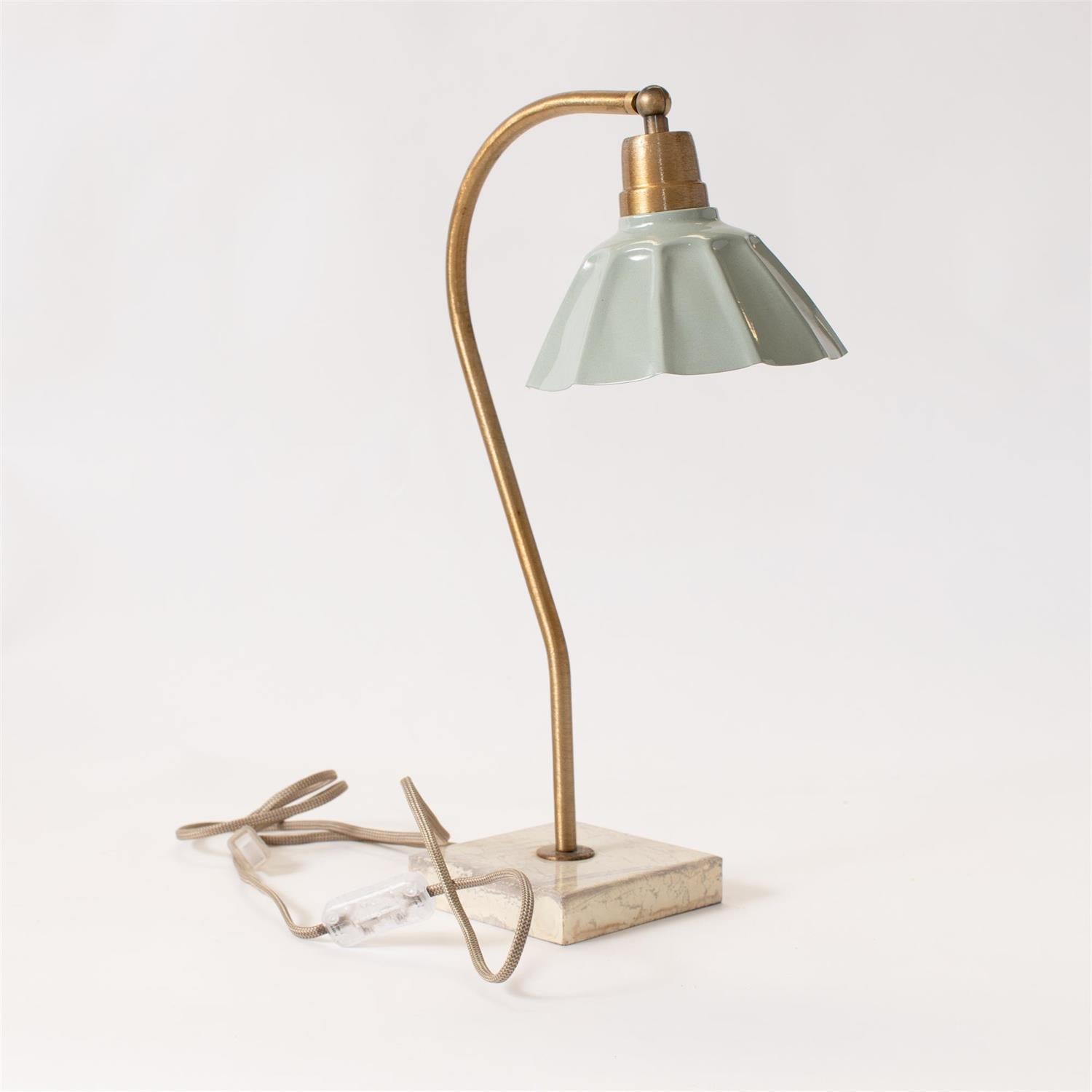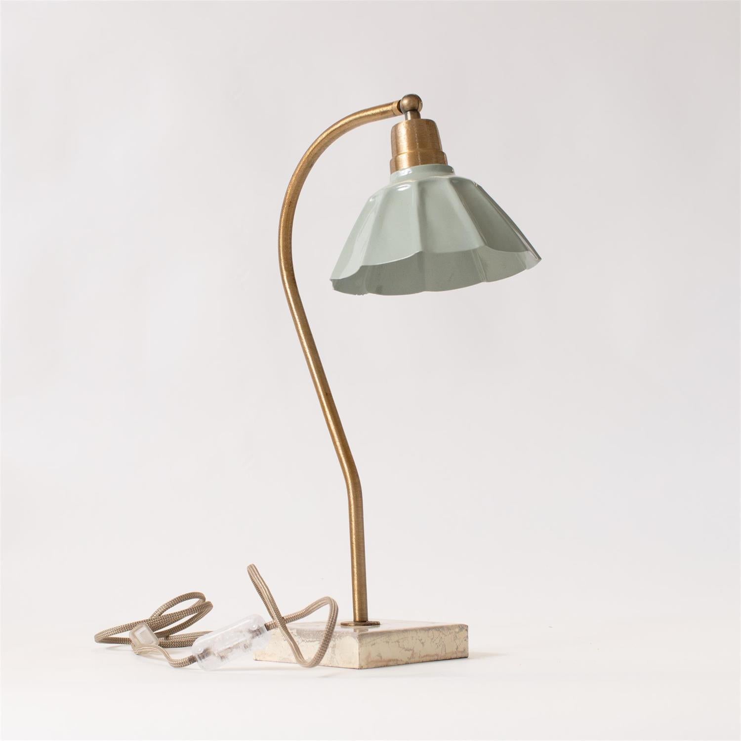 Brighten up your space with this playful Lamp! The sleek brass goose neck adds a touch of whimsy while the light green shade creates a calming ambience. Perfect for adding a quirky twist to any room.