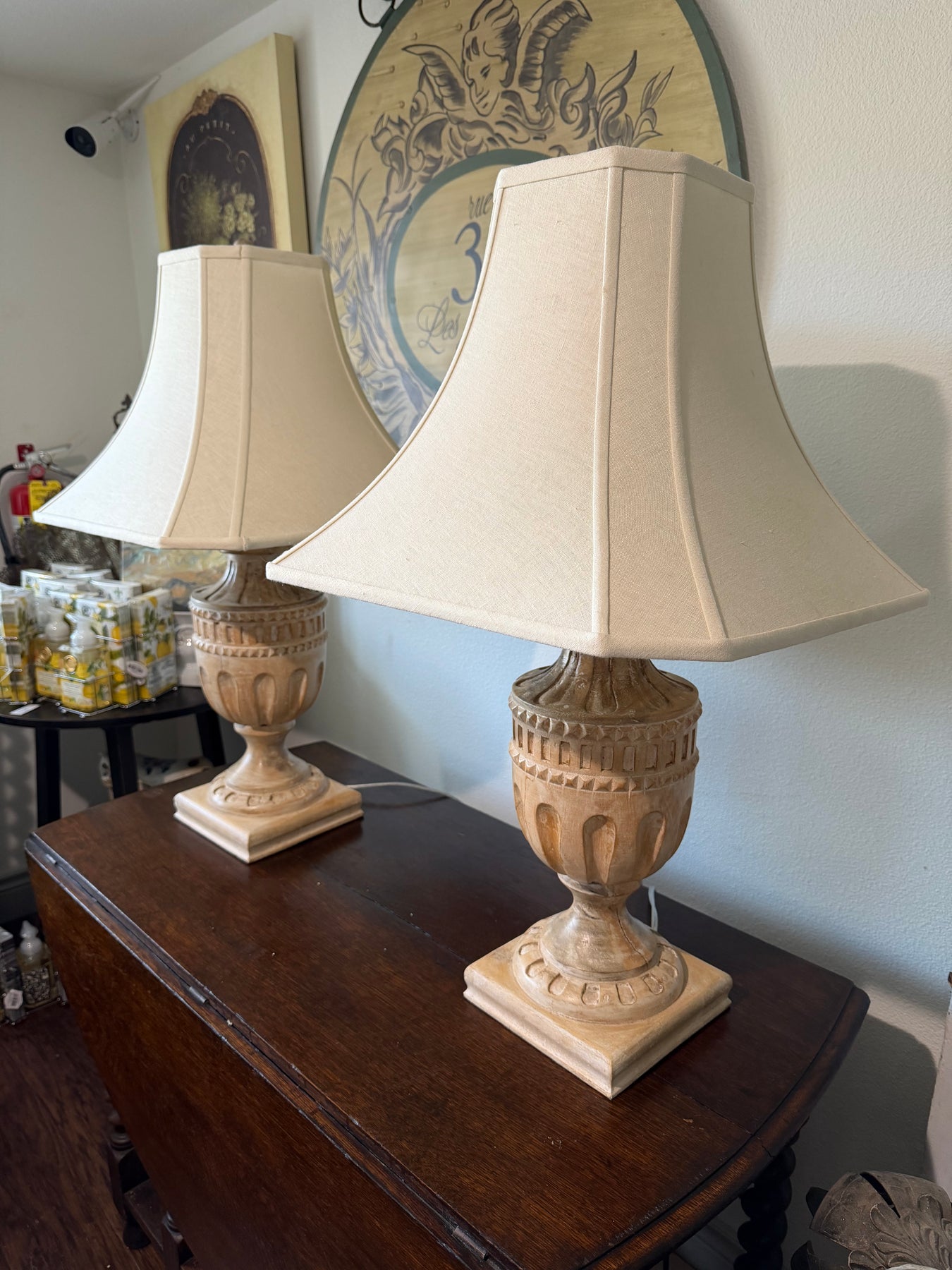 Bring a touch of classical elegance to any room with this charming pair of wooden Grecian column lamps. Each lamp features a beautifully crafted cylindrical base inspired by ancient architecture, adding timeless sophistication to your décor. Perfect for flanking a console table, bookshelf, or entryway, these lamps deliver warm, ambient lighting with undeniable style. The natural wood finish complements both traditional and eclectic interiors, making them a versatile choice for design lovers who appreciate a little historical flair.