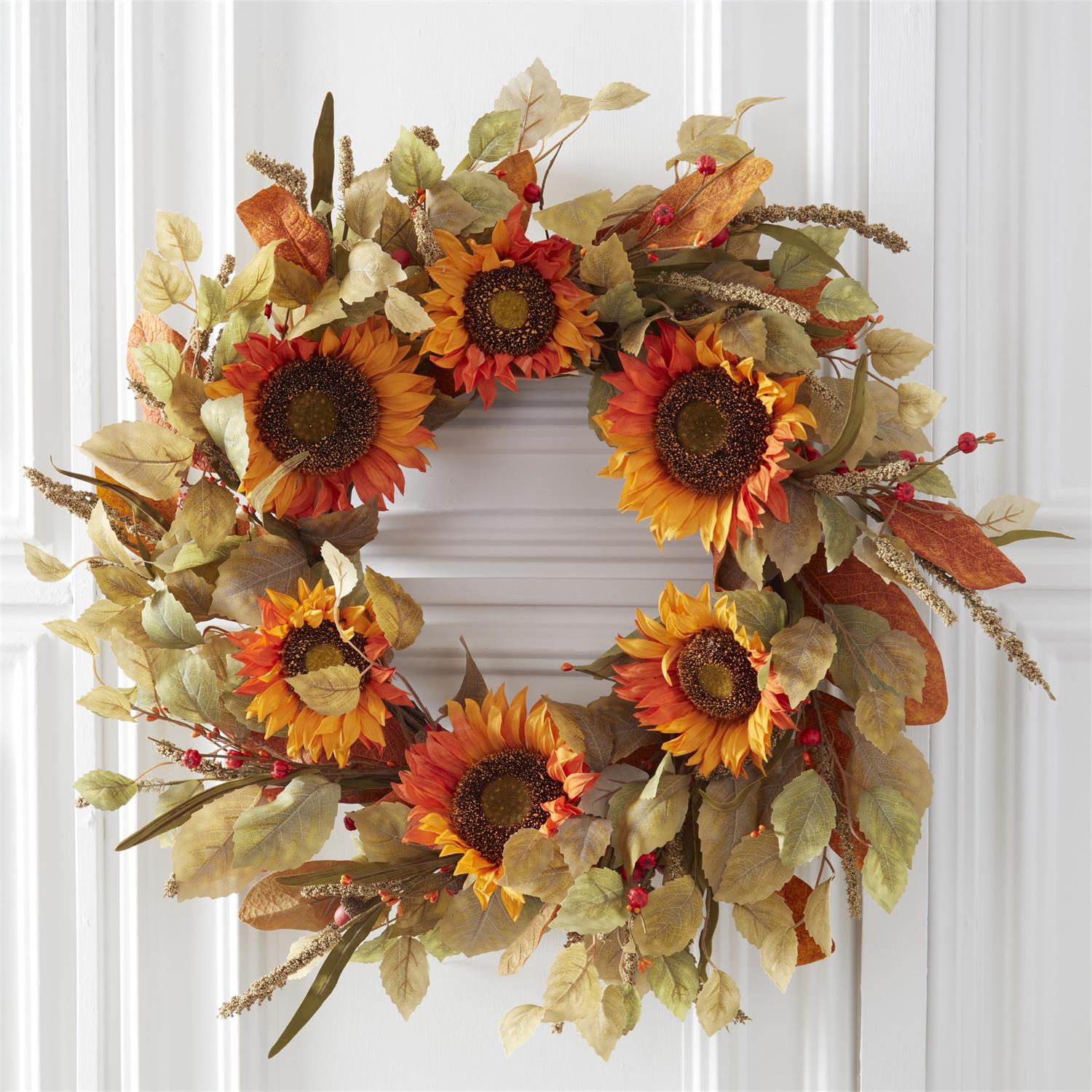 27" Orange Sunflower Wreath w/Mini Pumpkins Berry