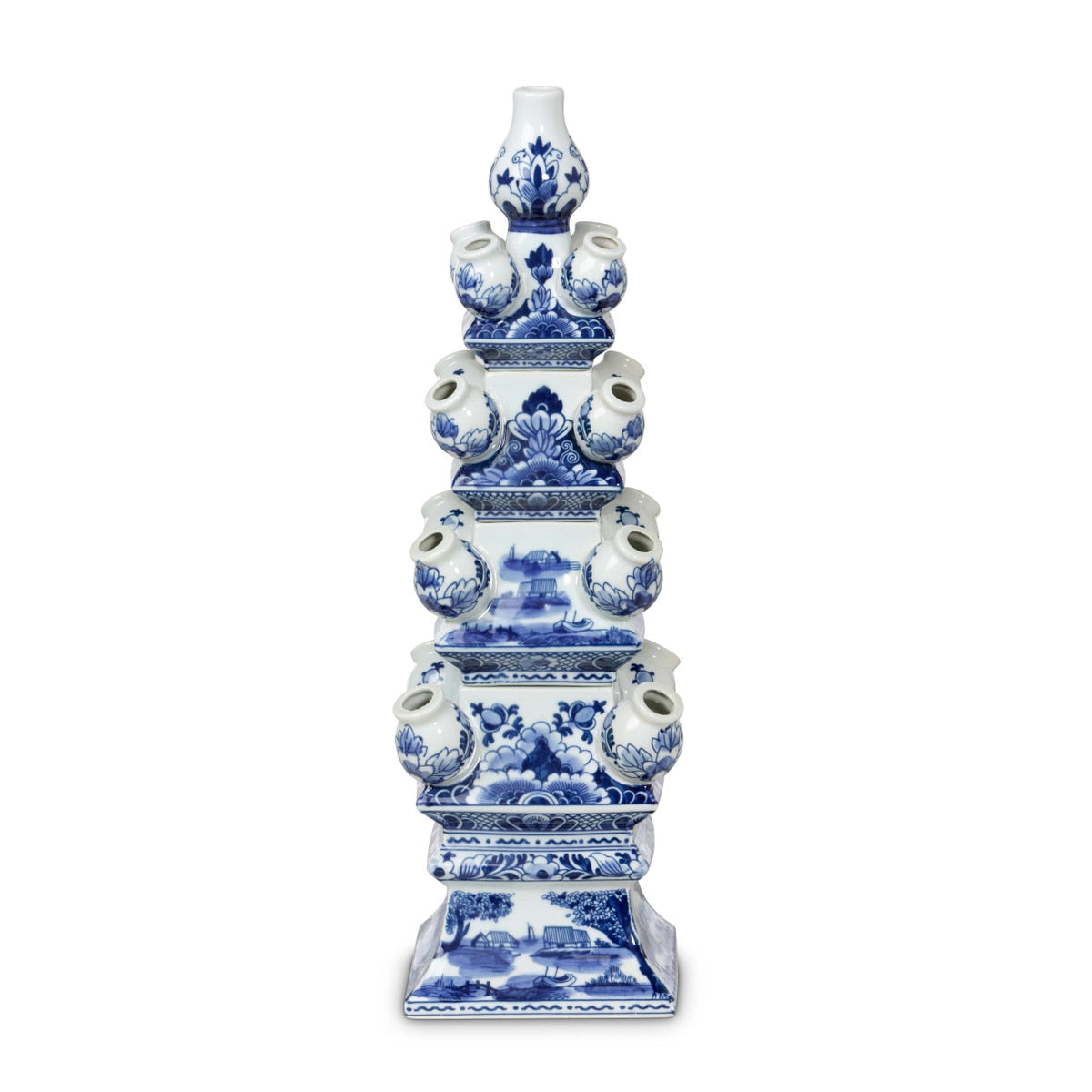Grace your home with the timeless beauty of this blue and white tulip vase. Its delicate chinoiserie design and elegant shape make it the perfect blend of classic charm and sophisticated style, ideal for adding a touch of elegance to any room.