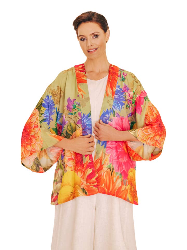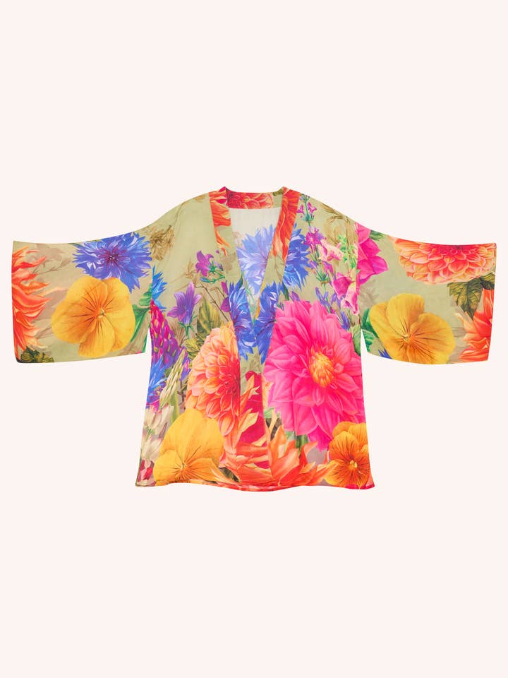 Not just a look, a vibe! Channel your boho-chic self in our bountiful blooms kimono jacket this summer. This bright colourway and bold print can wrap around your sleepwear or elevate your dinner party look, you will never want to take it off! Cool hand wash only. One size: please see attached imagery for dimensions.