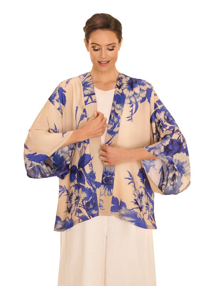 Where romanticism and flowy clothes meet in paradise! Our perfectly elegant China Blue Blooms kimono jacket will surround you in feelings of softness and timeless femininity. Go on, treat yourself! Cool hand wash only. One size: please see attached imagery for dimensions.
