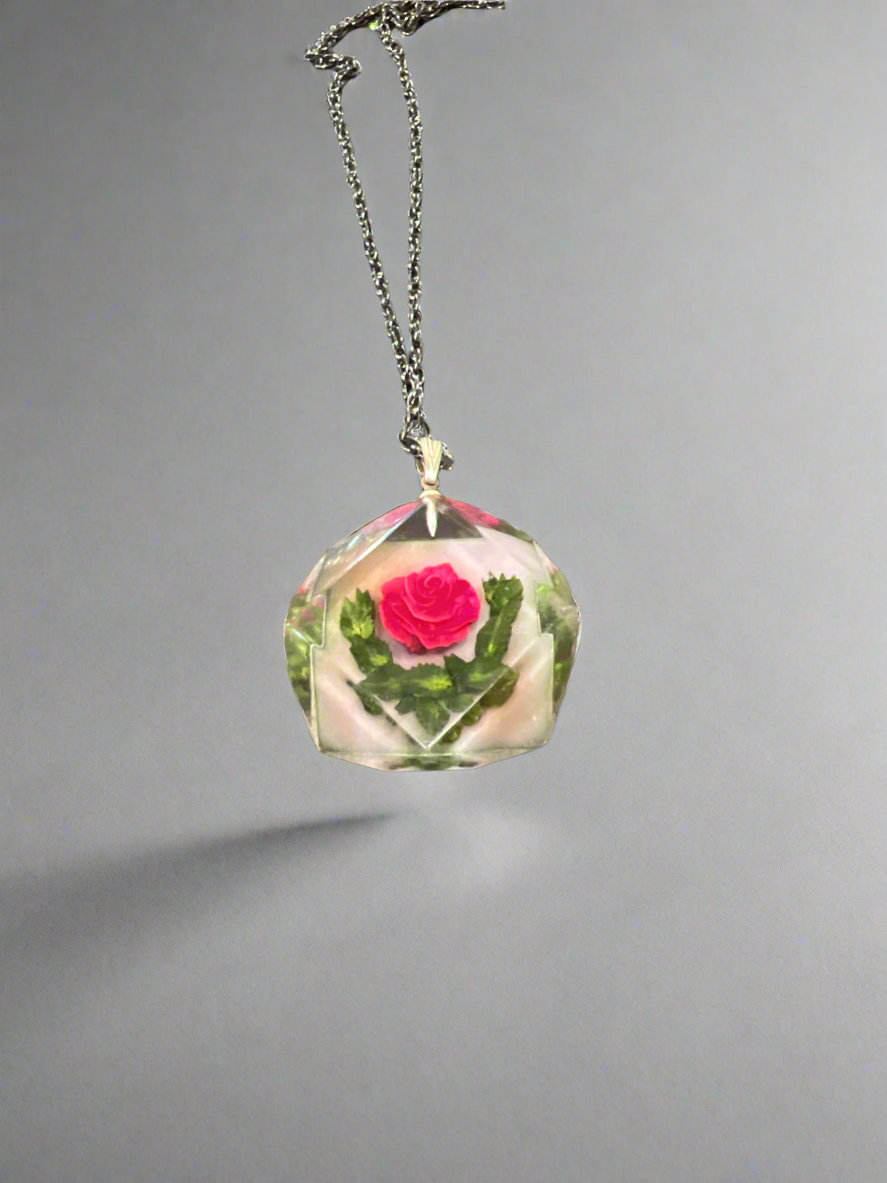 Indulge in luxury with our Vintage Lucite Rose Necklace & Earrings set. The delicate roses crafted from high-quality Lucite add a touch of sophistication to any outfit. Elevate your style and stand out with this exclusive set.