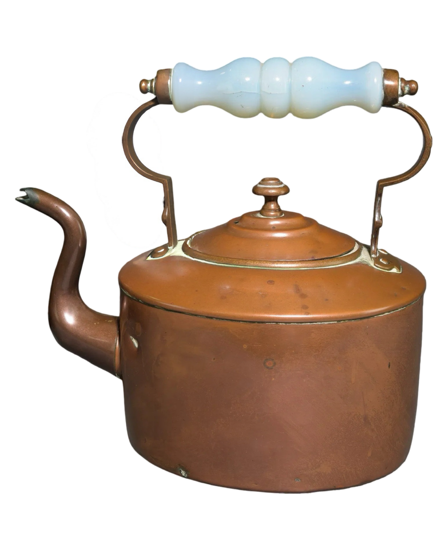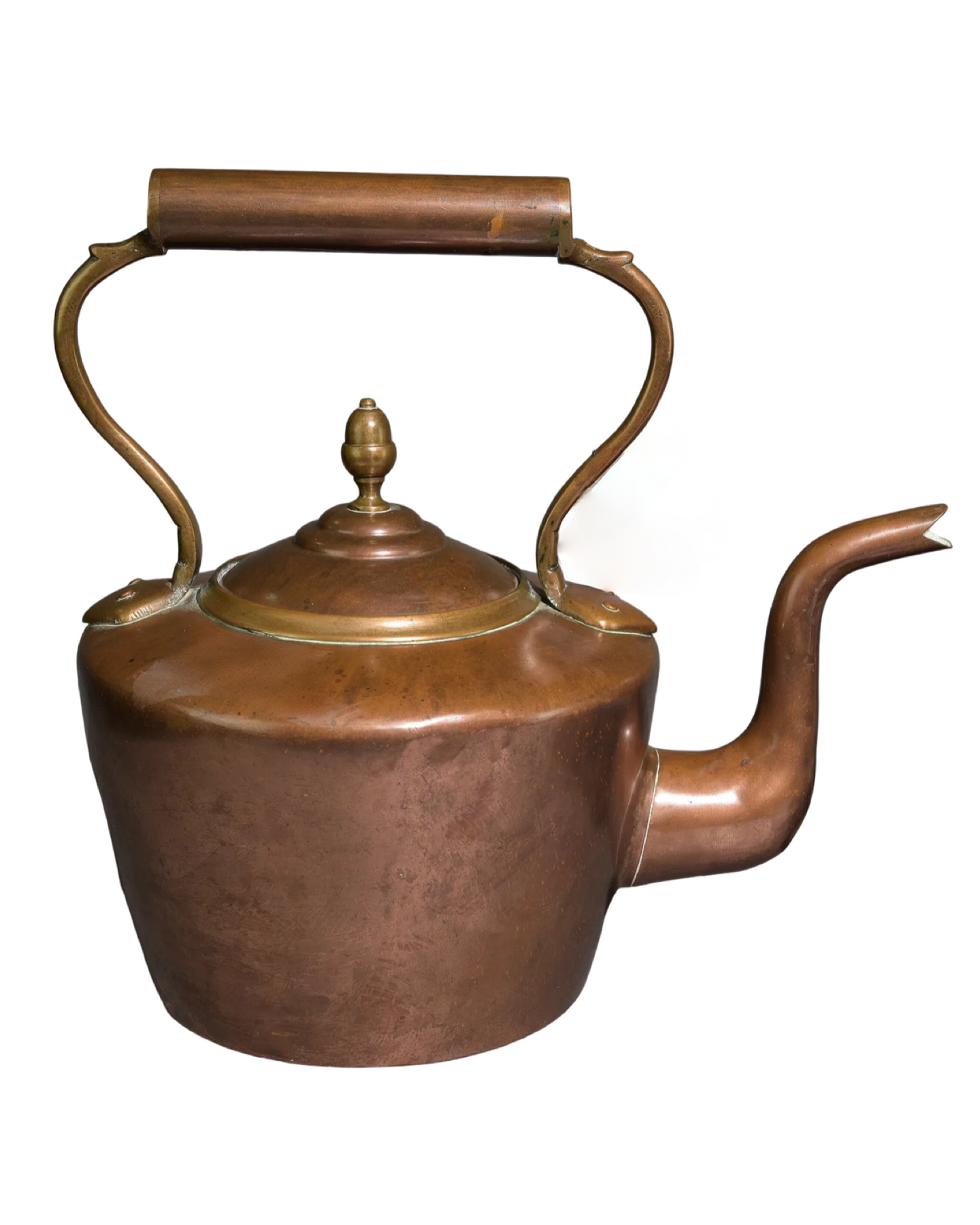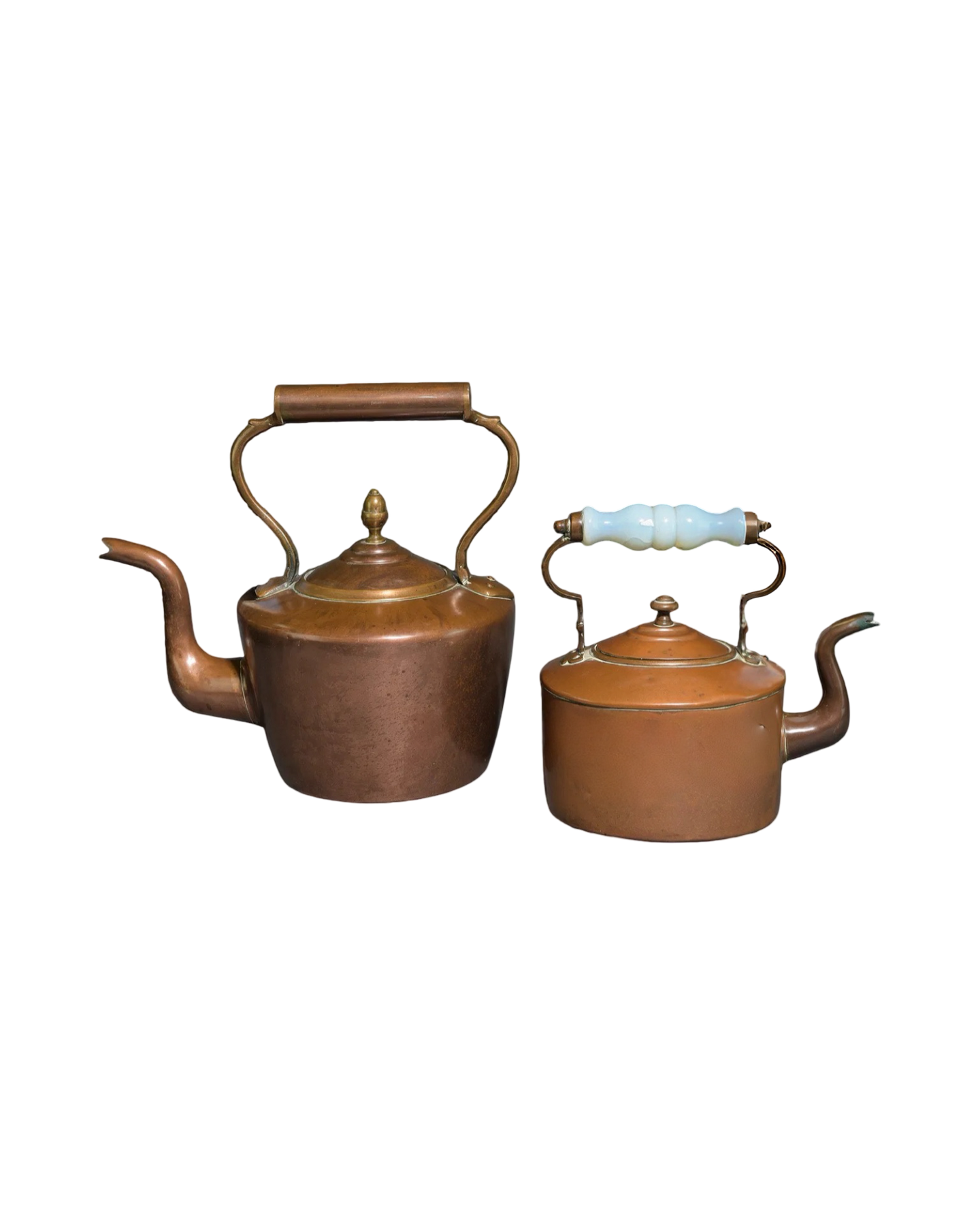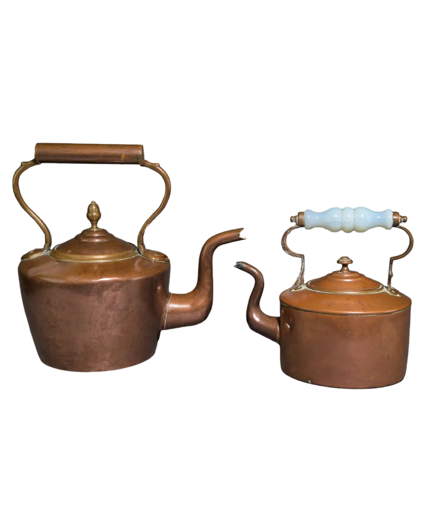 Experience timeless charm with this Antique English Copper Tea Kettle. Crafted from genuine copper, it offers excellent heat conductivity for efficient boiling. Its classic design adds an elegant touch to any kitchen, while the durable construction ensures long-lasting use. Perfect for tea enthusiasts who appreciate both style and function, this kettle blends tradition with practicality beautifully. Elevate your tea-making ritual with a piece that’s as decorative as it is reliable. Largest measures 14 in tall x 14.5 x 10.5.