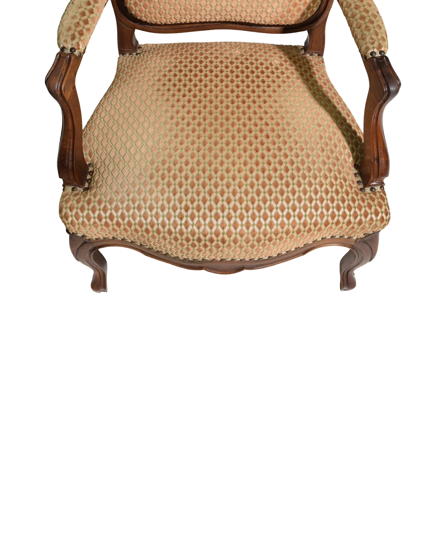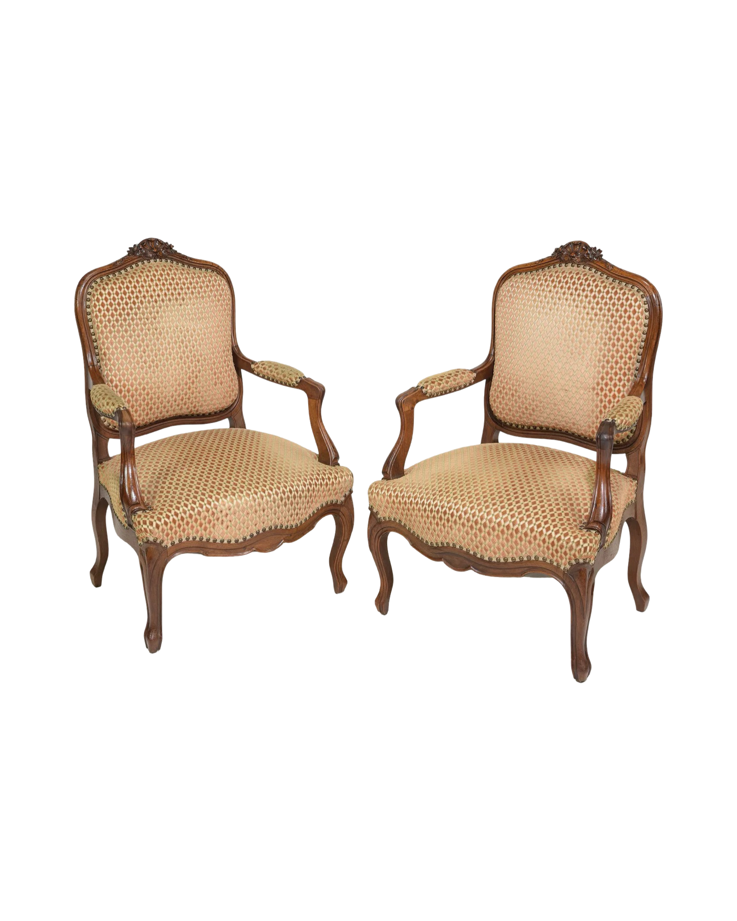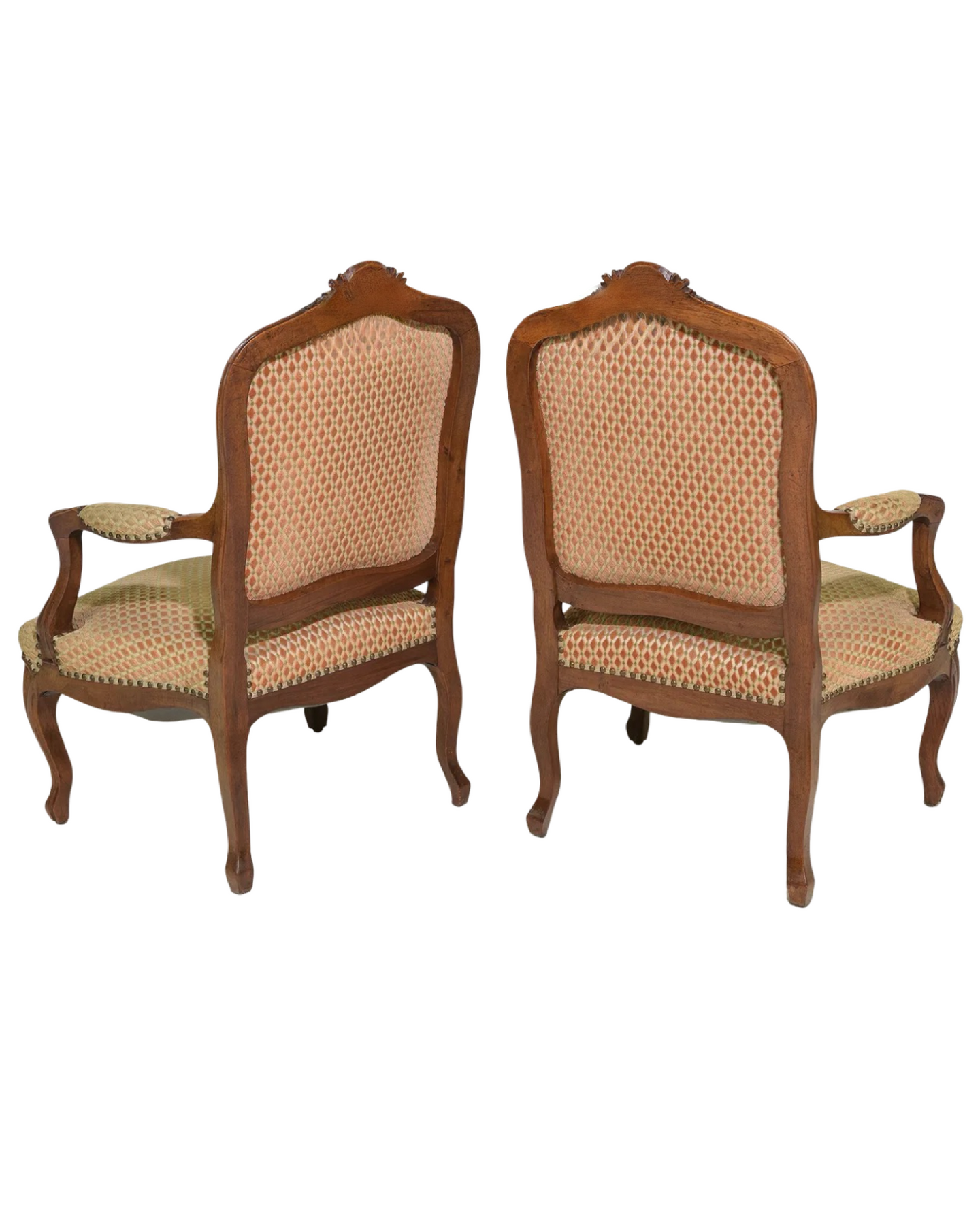 Elevate your living space with this exquisite pair of Antique Louis XV Style Walnut Arm Chairs. Crafted from rich walnut wood, these chairs showcase elegant curves and ornate detailing synonymous with classic French design. Their timeless style adds sophistication to any room, while the sturdy construction ensures lasting comfort and durability. Perfect for formal sitting areas or as statement pieces, these chairs blend historical charm with practical function. Bring home a touch of refined elegance that enhances your décor instantly. Measures: 38.5 in tall x 26 x 23 each with a seat height of 15.25 inches