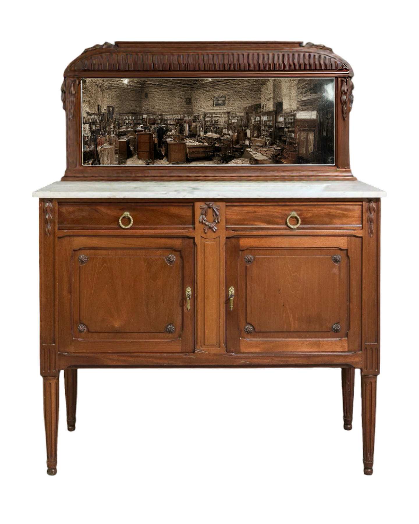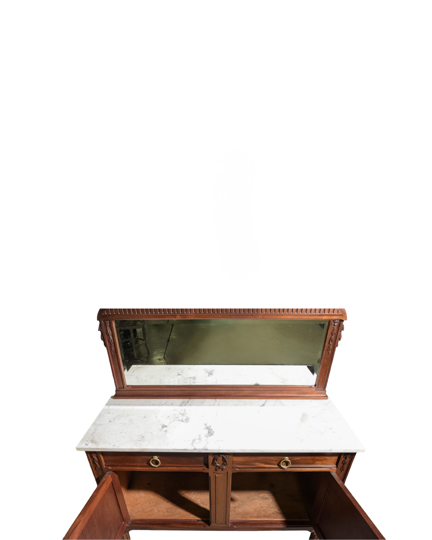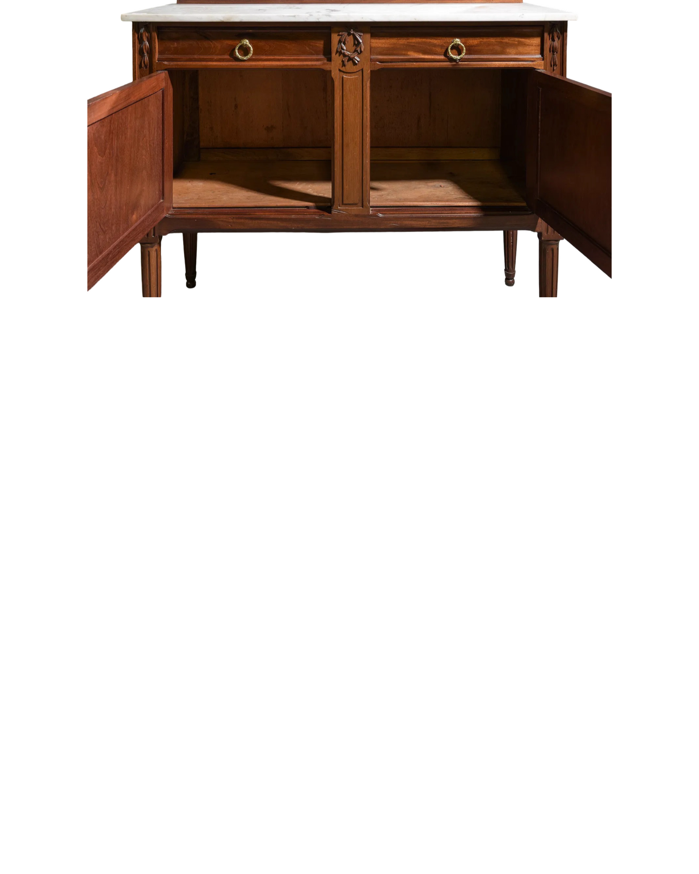 Elevate your space with this Antique French Louis XVI server, featuring an elegant white marble top that radiates classic sophistication. Its timeless design and craftsmanship add a refined touch to any room, perfect for displaying cherished items or serving guests in style. Combining beauty and function, this server is an exquisite statement piece that enhances your home’s charm and elegance. Buffet Measures: 62.25 in tall x 49 x 19.