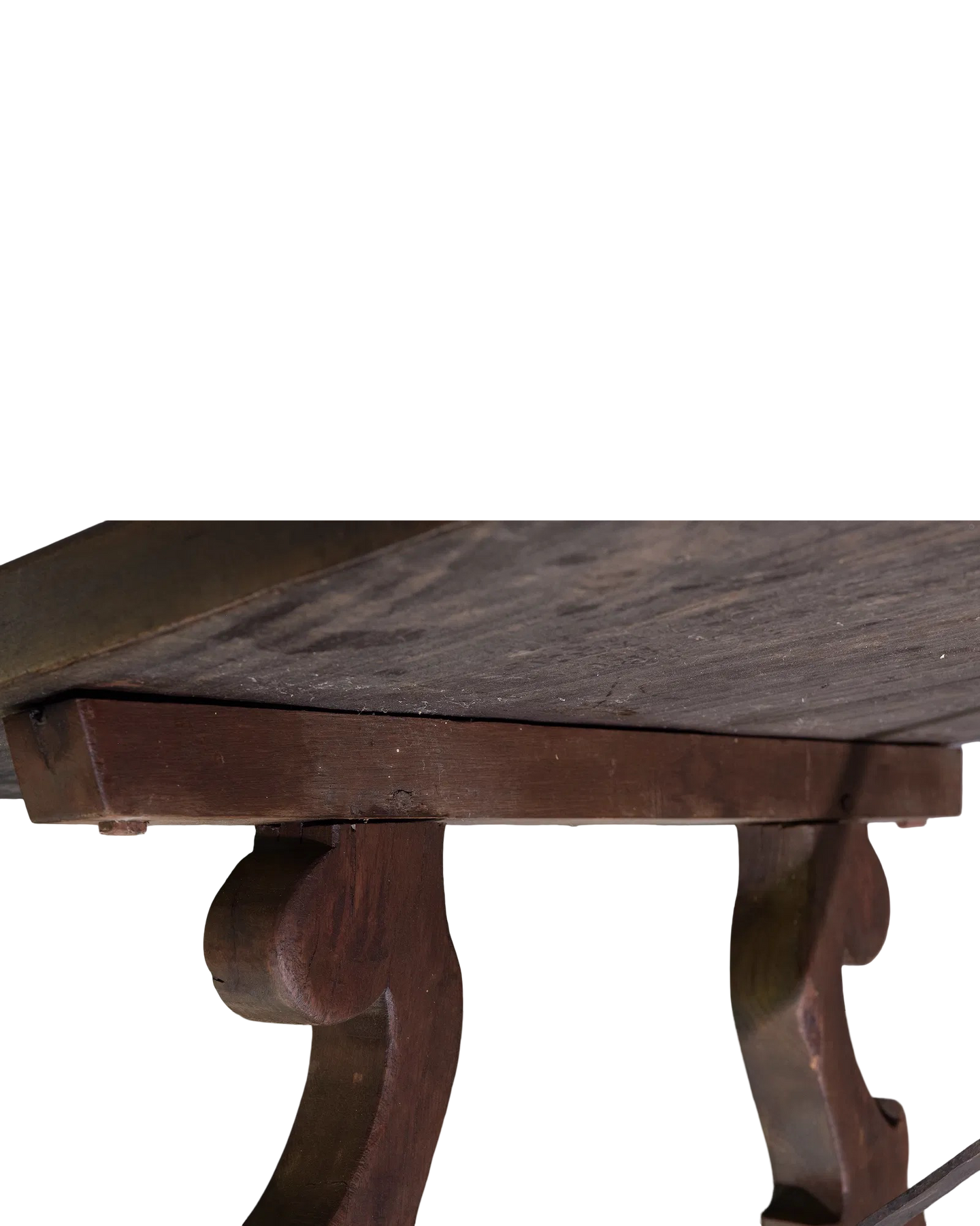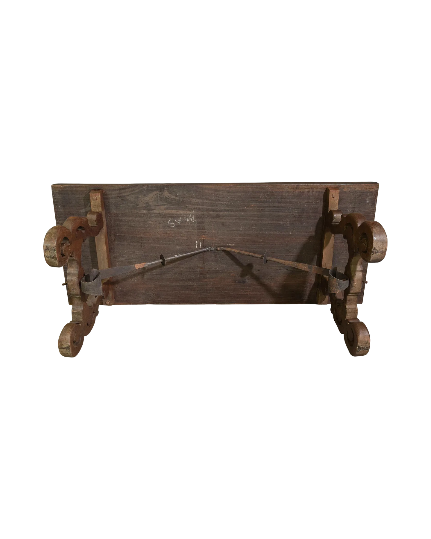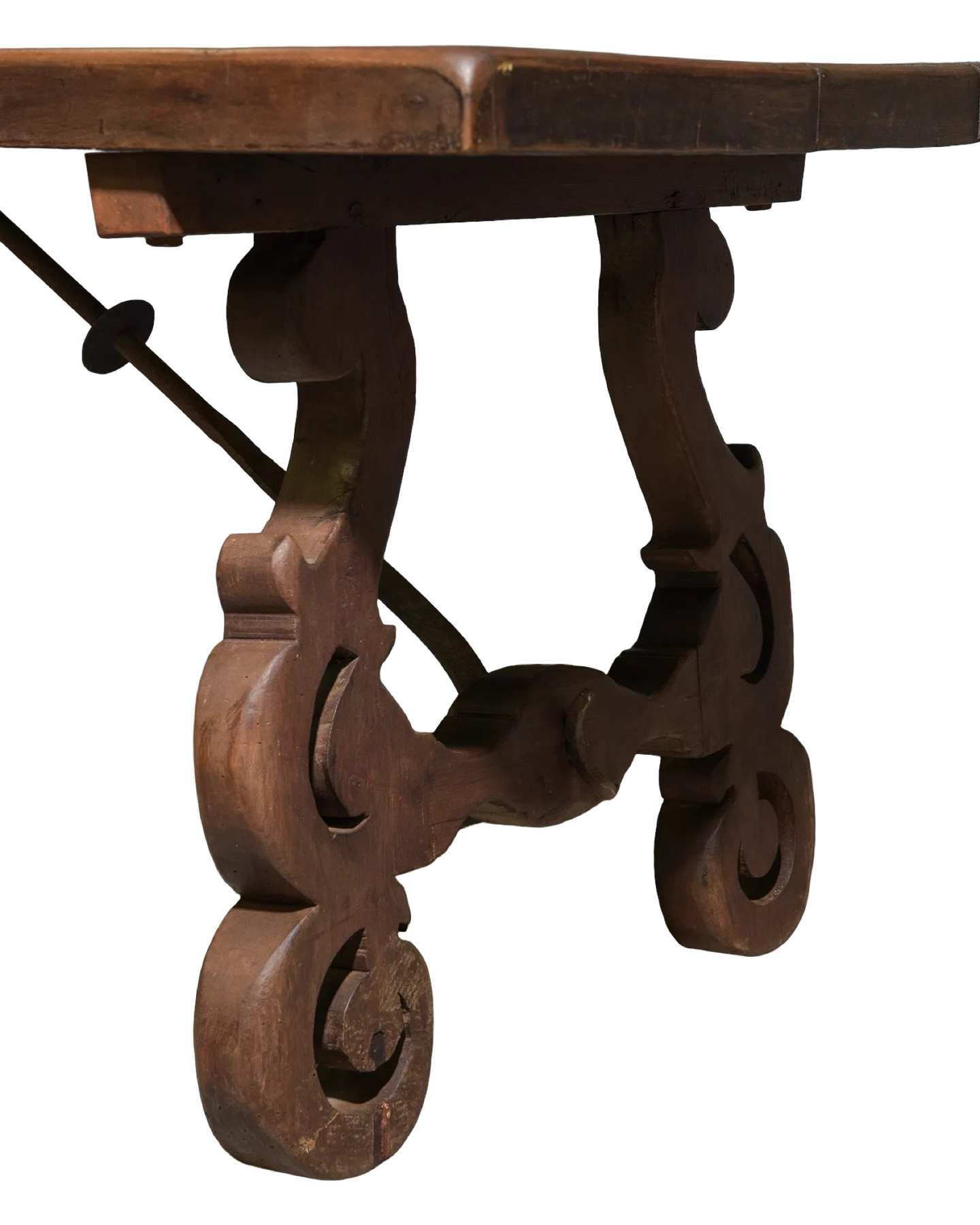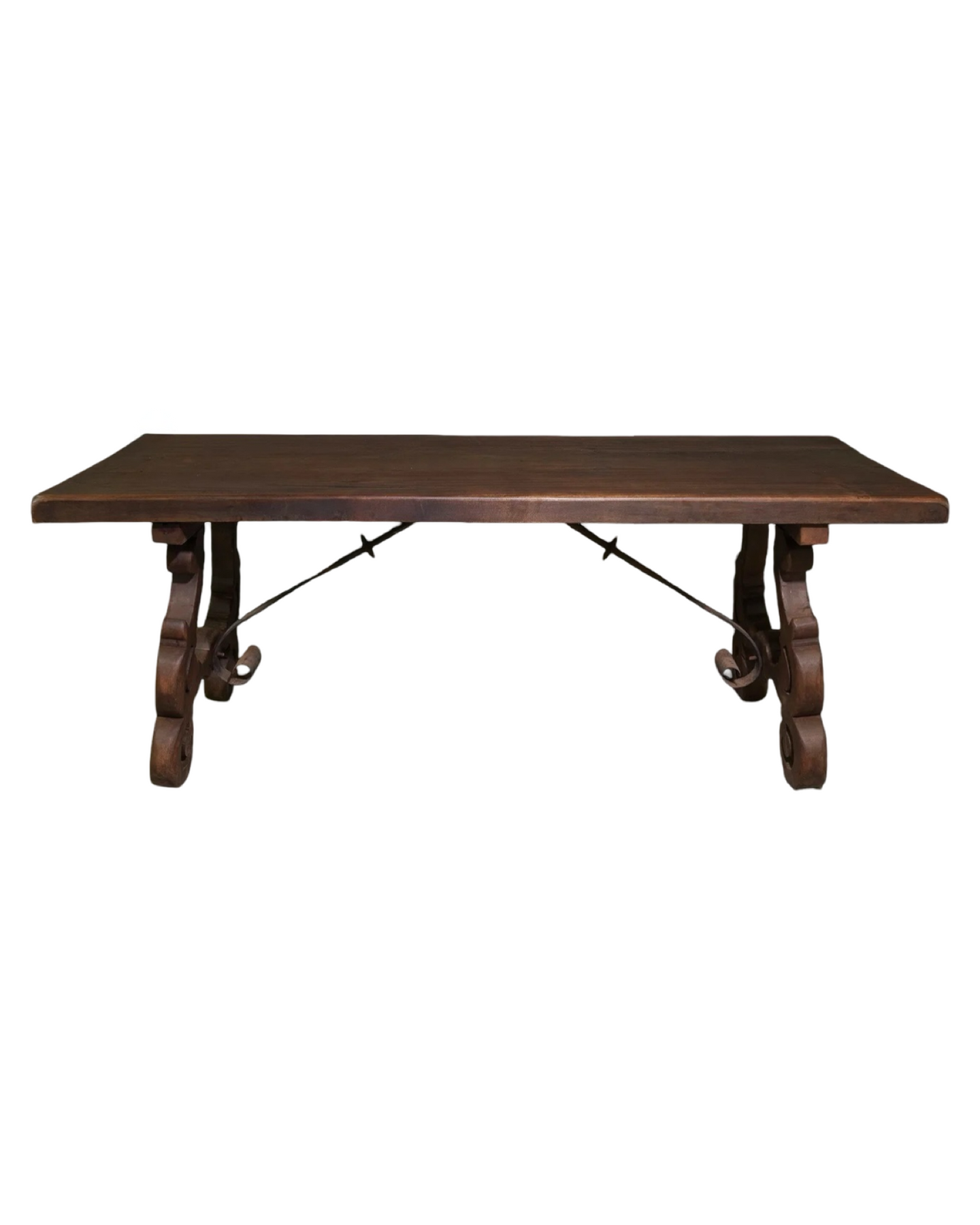 Antique Spanish Style Dining Table with Iron Stretcher