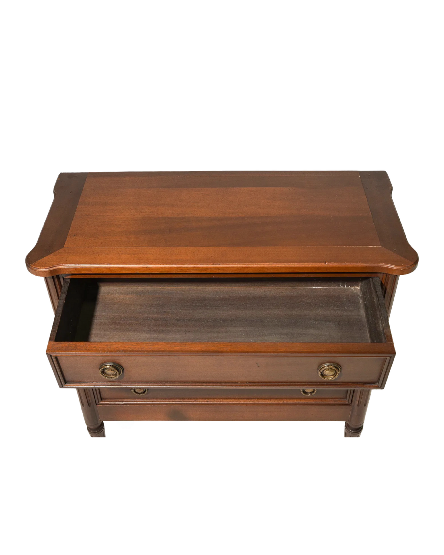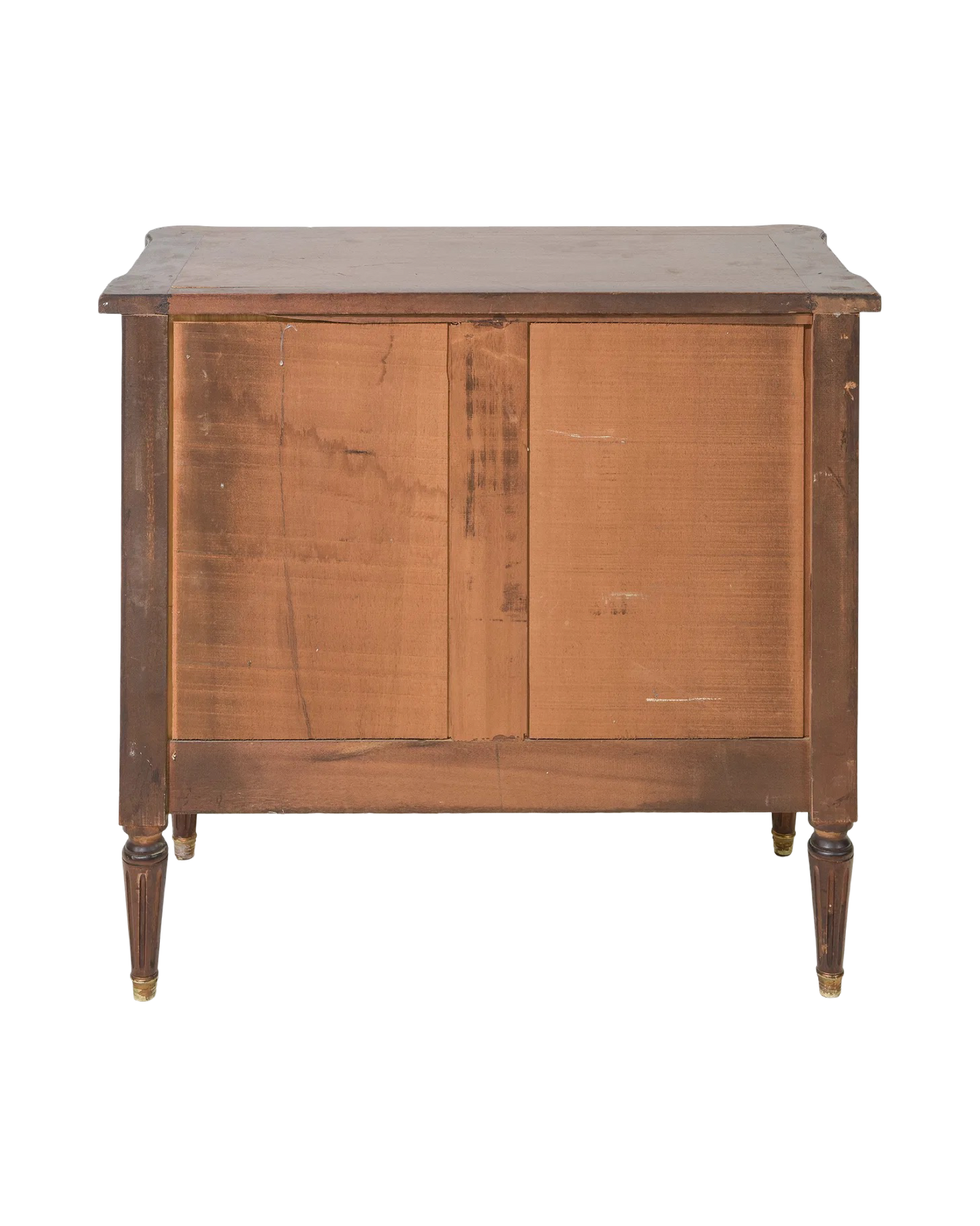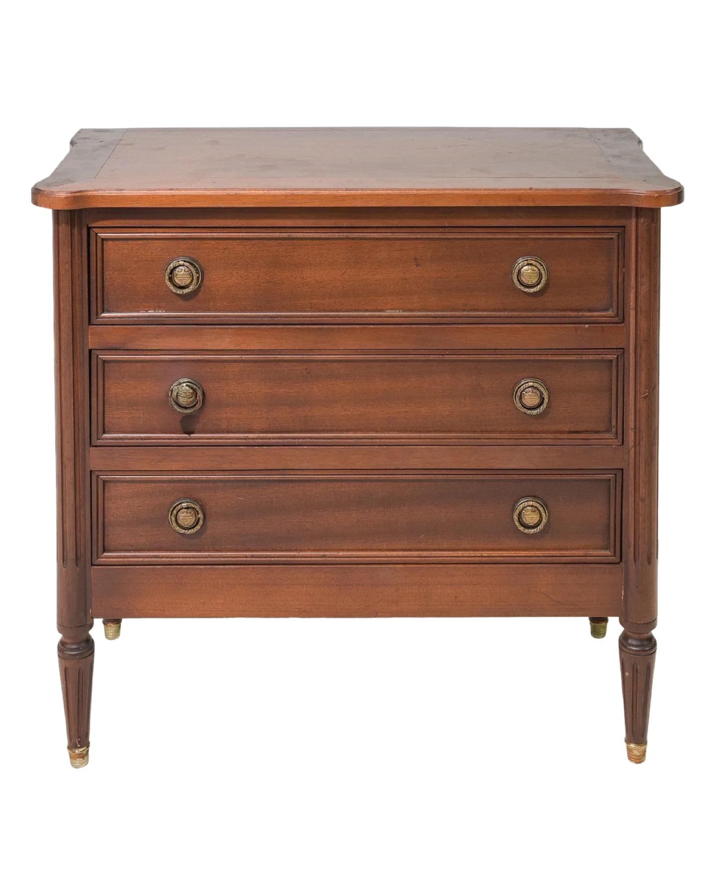 Elevate your bedroom with this elegant Antique Walnut Louis XVI three-drawer bedside chest. Crafted from rich walnut wood, it offers timeless sophistication and practical storage with three spacious drawers. Its classic Louis XVI design brings a refined charm that complements traditional and modern interiors alike. Ideal for keeping essentials organized while enhancing your space with vintage allure. Measures: 31.5 in tall x 32 x 15.
