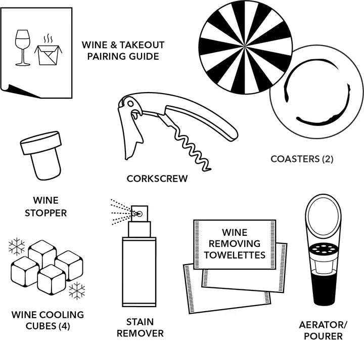 Say “yes way” to our beverage-inspired Wine and Champagne Gift Kit. With Furoshiki-inspired packaging, this peach-perfect bow box is a great way to celebrate warm climes ahead. Inside includes 8 of the trendiest & convenient wine accessories & essentials such as: an aerator/pourer, 2 coasters, a corkscrew, wine stopper, 4 reusable ice cubes, stain remover spray, wine removing towelettes, and a wine & takeout pairing guide.