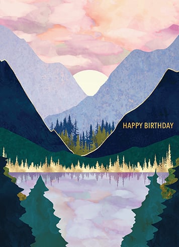 Birthday card by Space Frog Designs. Printed in the USA on recycled textured paper, using vegetable-based inks. Comes with color-coordinated envelope made of recycled paper. Packaged in cello jacket. Features a decorative foil.